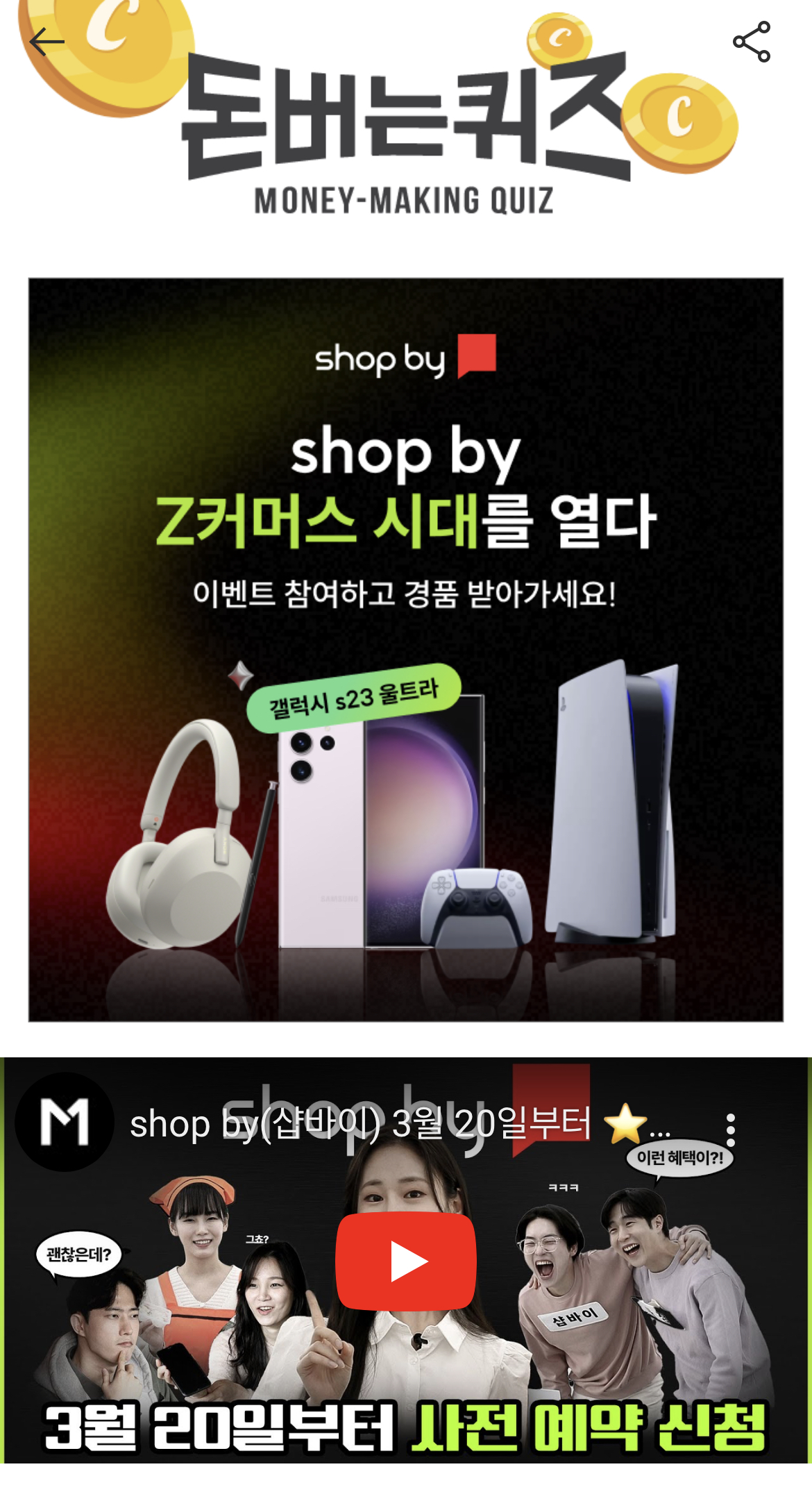 캐시워크 돈버는 퀴즈 정답 NHN커머스 shop by