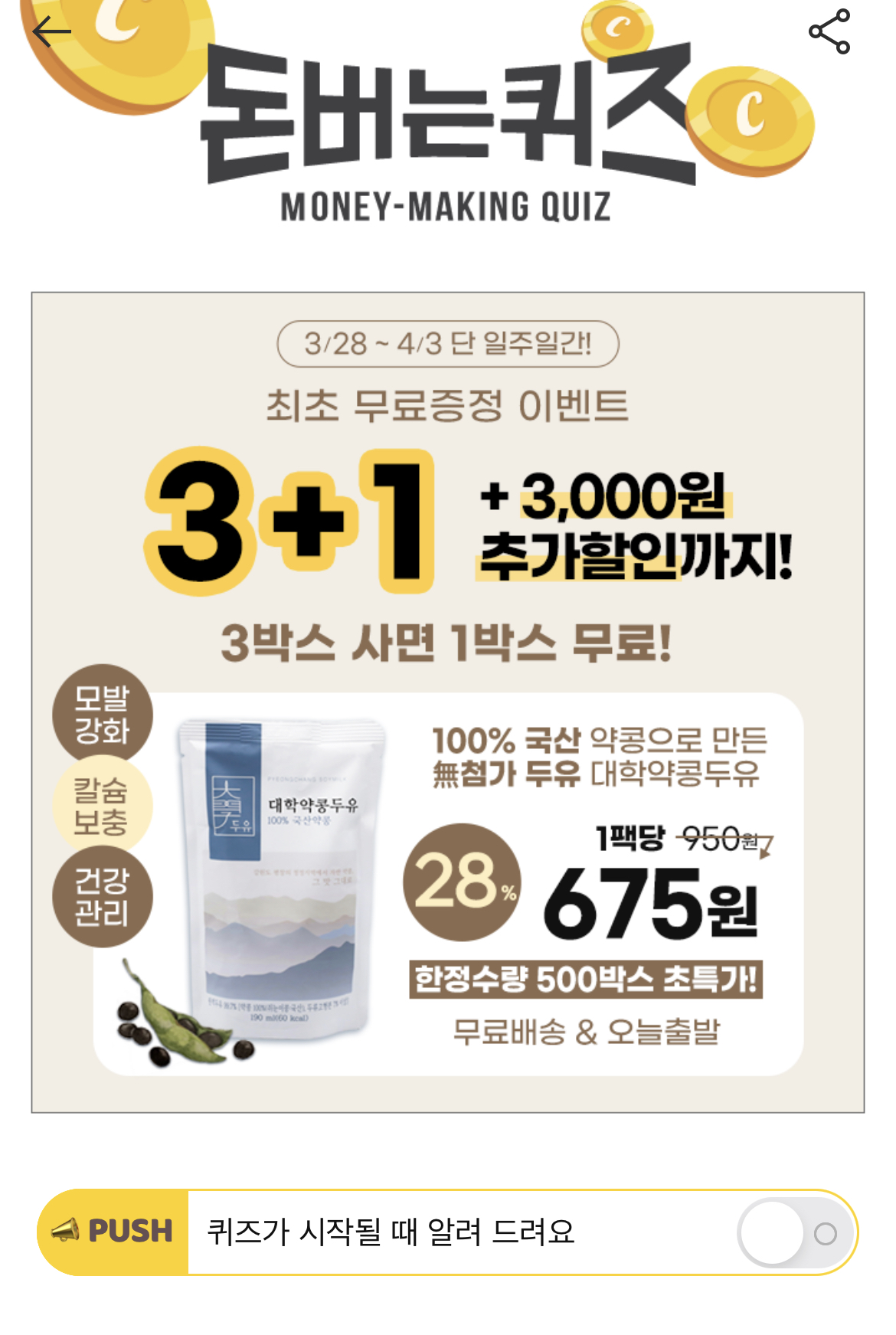 🎉 최초 대학약콩두유 3+1 이벤트 오픈! 3,000원 추가 할인까지!