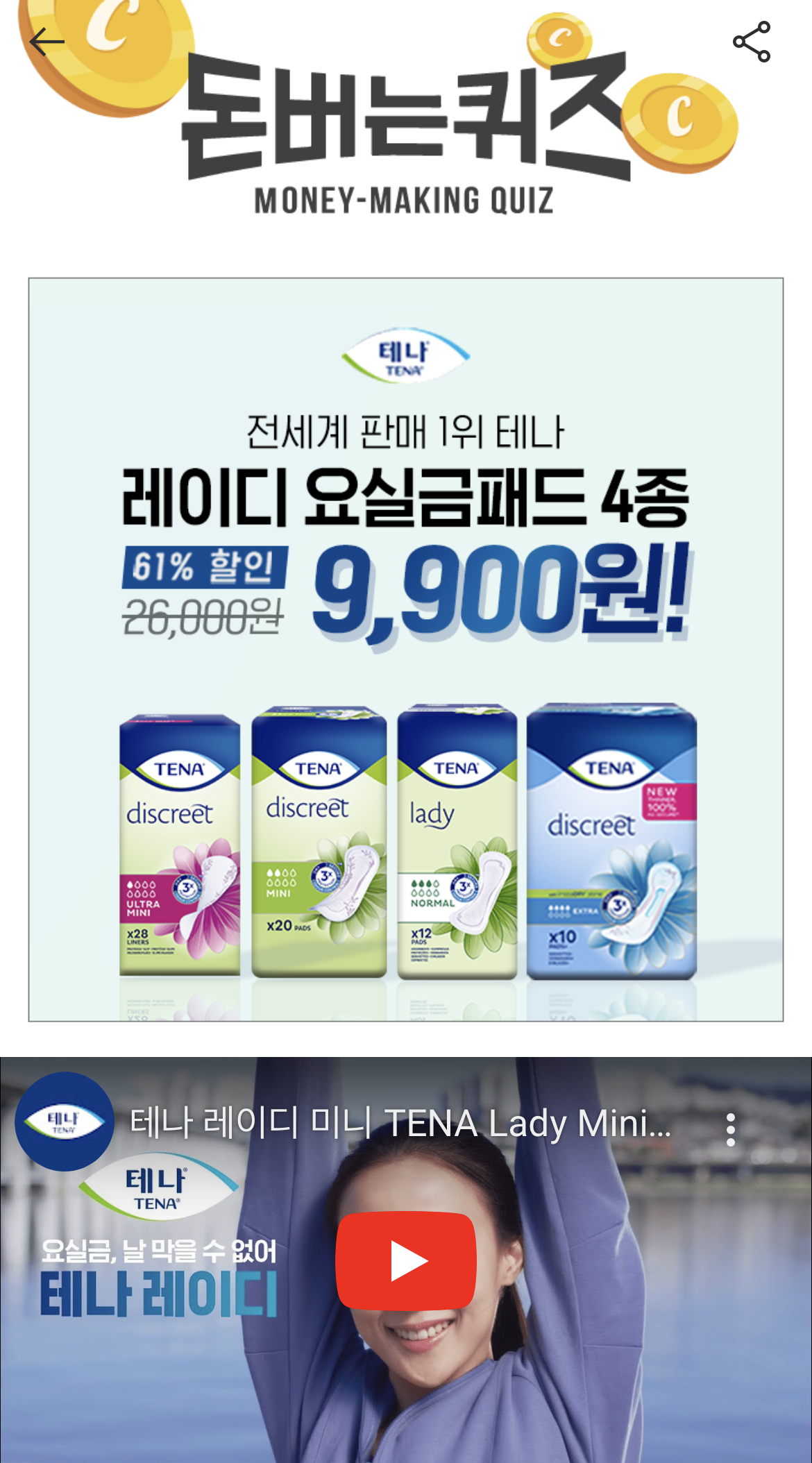 캐시워크 돈버는 퀴즈 정답 테나 레이디 미니 ㅎㅅ