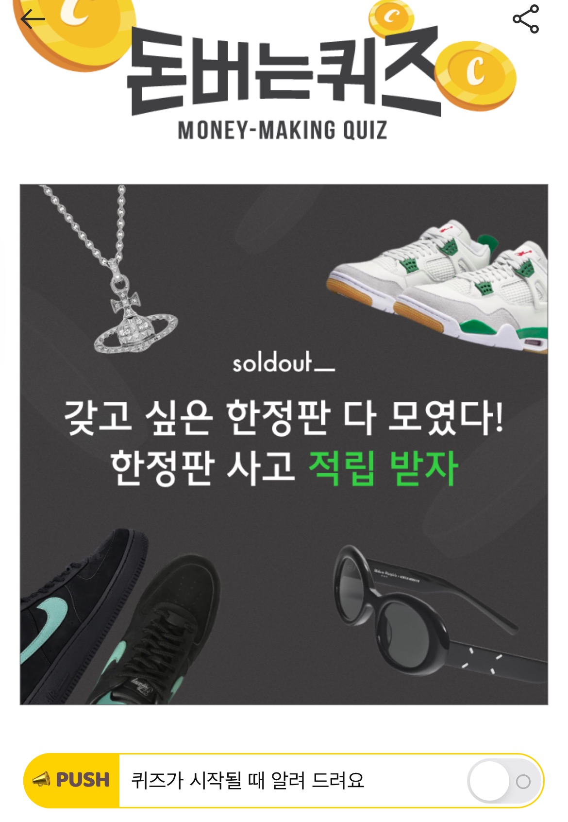 ※솔드아웃 앱 설치 후 정답을 맞혀보세요.
