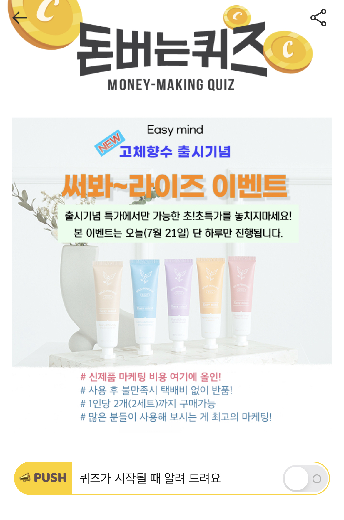 캐시워크 돈버는퀴즈 정답 이지마인드 고체향수 영문/숫자/단어