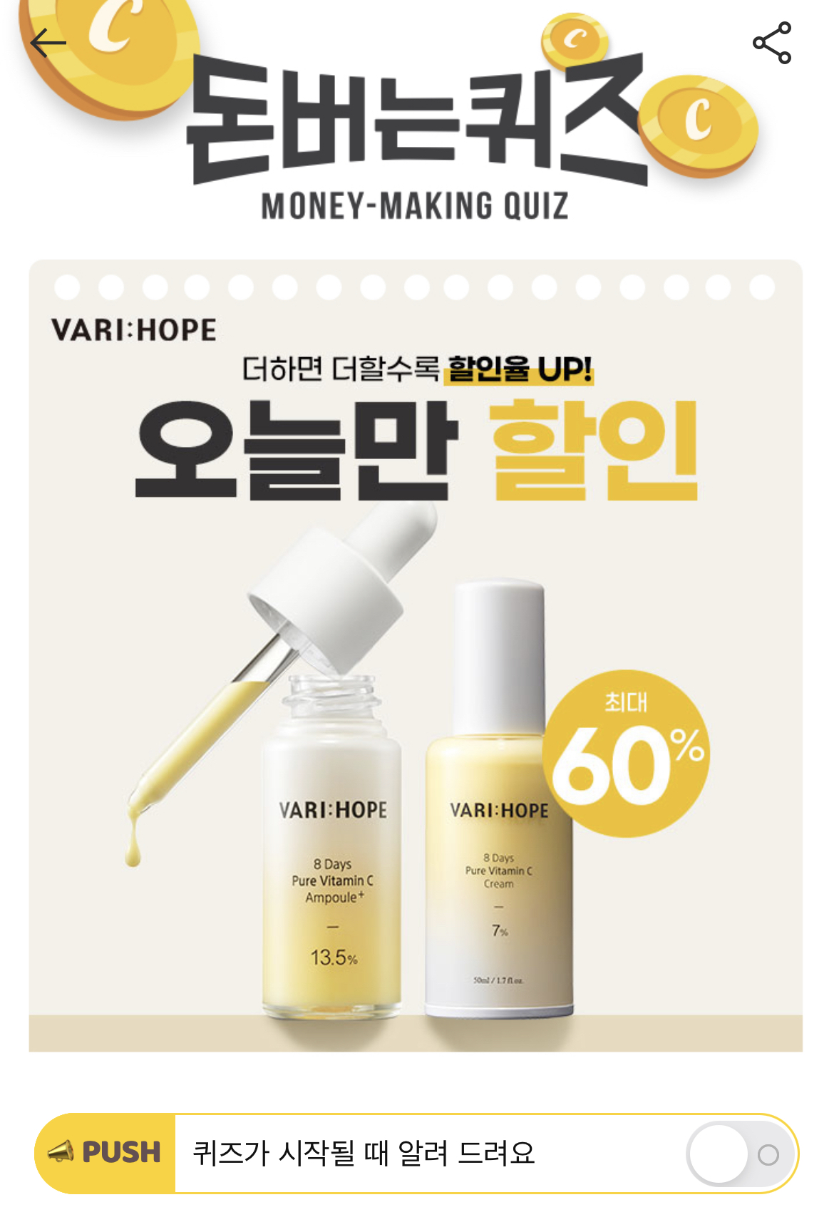 캐시워크 돈버는퀴즈 정답 베리홉 8일미백앰플 ㅂㅌㅁC