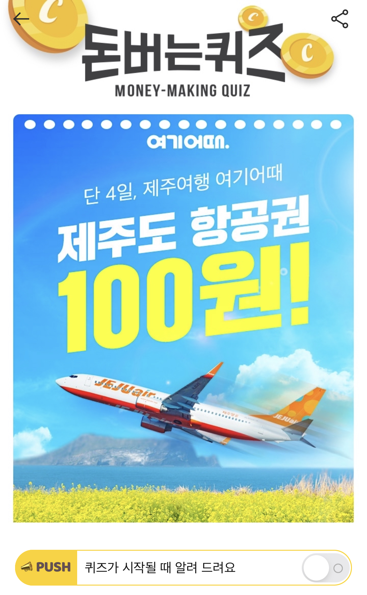제주여행 여기어때에서는 제주 항공권 100원 티켓 뿐만 아니라, 선착순으로 사용 가능한 OOOO원 쿠폰도 증정하고 있습니다. OOOO에 들어갈 숫자는 무엇일까요?