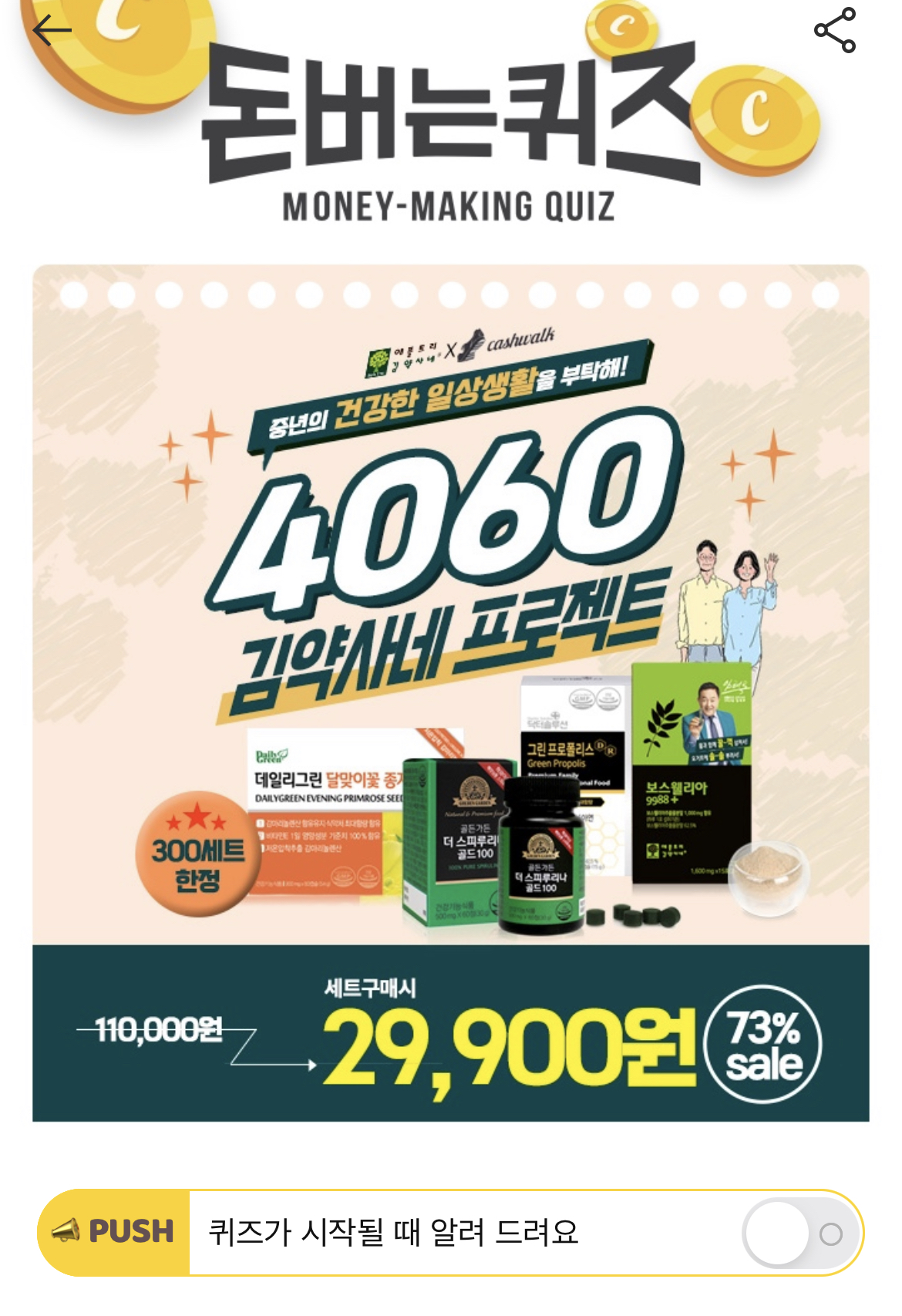 캐시워크 돈버는 퀴즈 정답 김약사네 프로젝트 플라보노이드 일일권장량