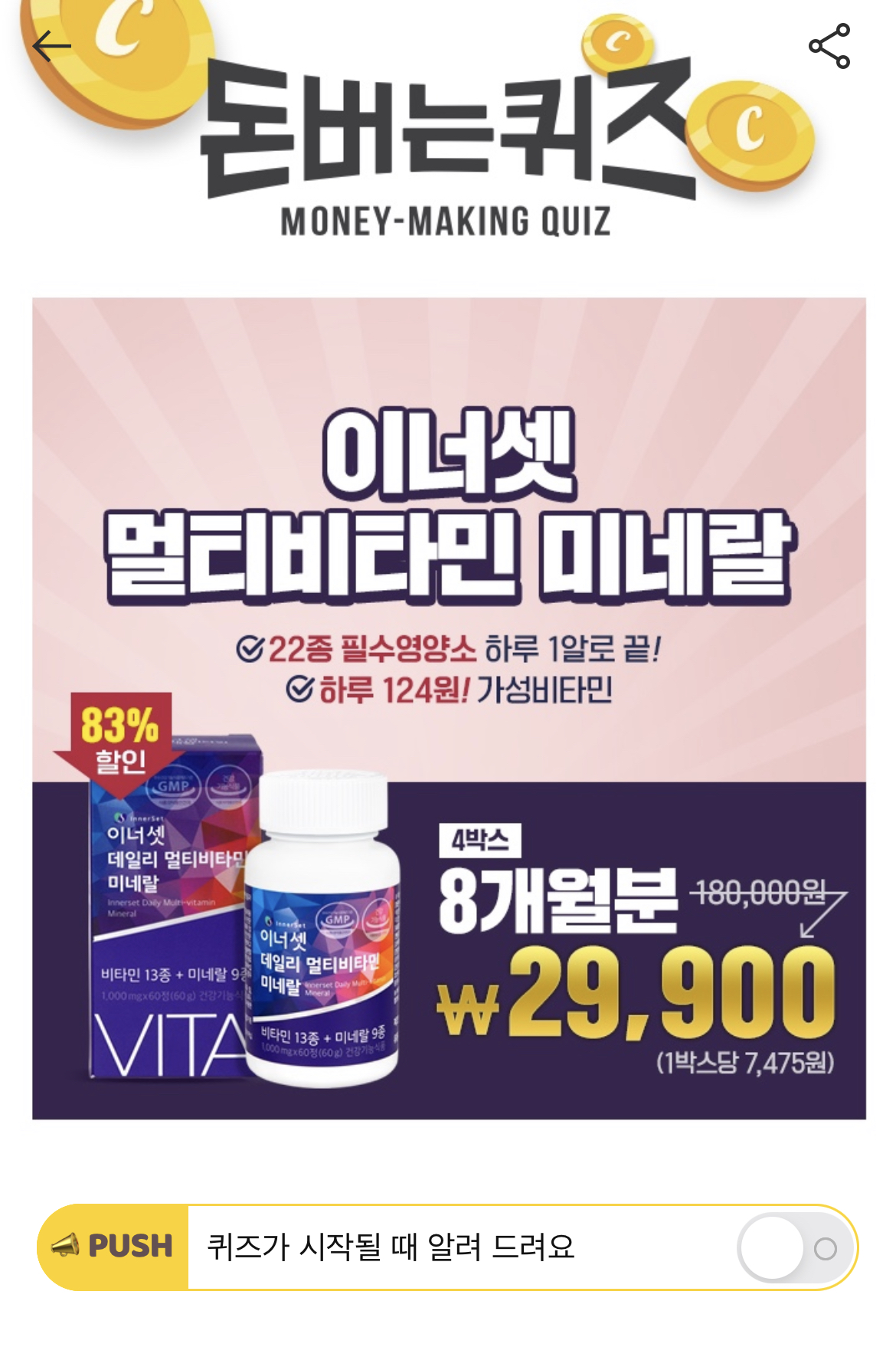 캐시워크 돈버는 퀴즈 정답 이너셋 멀티비타민 미네랄 ㅇㅅㅈ