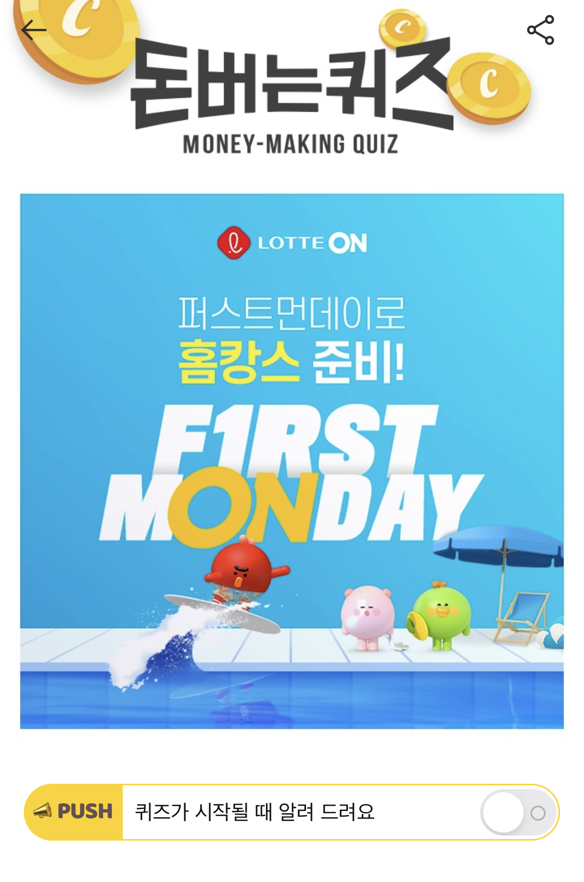 캐시워크 돈버는 퀴즈 정답 롯데ON 퍼스트먼데이 ㄹㅅㅇㅎ