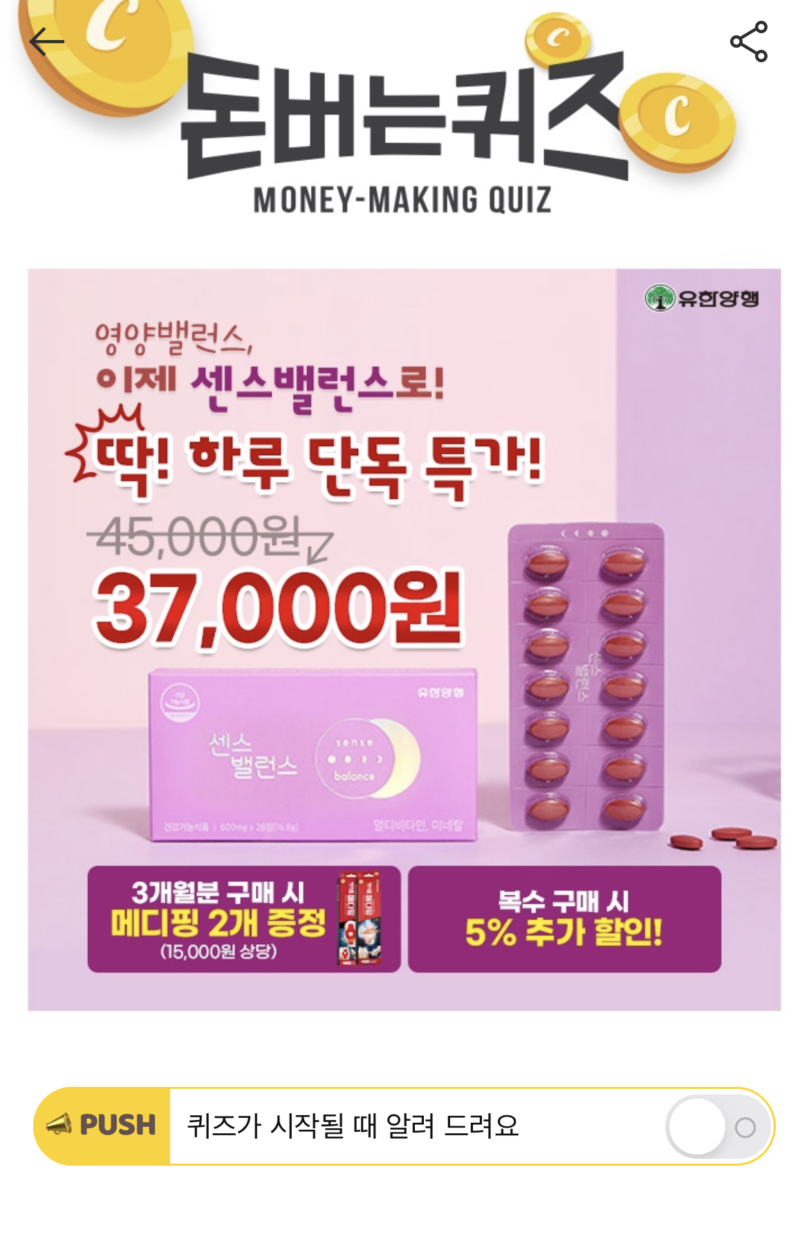 센스밸런스는 멀티비타민, 미네랄이 함유된 건강기능식품으로 임신, OO중에 드셔도 좋습니다. OO에 들어갈 내용은 무엇일까요 ? (초성힌트 : ㅅㅇ)