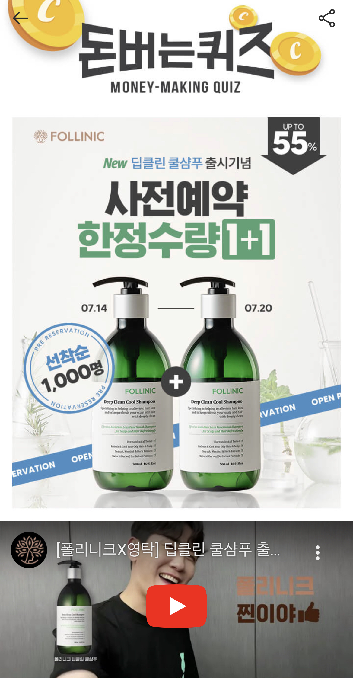 캐시워크 돈버는 퀴즈 정답 폴리니크 딥클린쿨 샴푸 ㅌㅁㅇㅎ