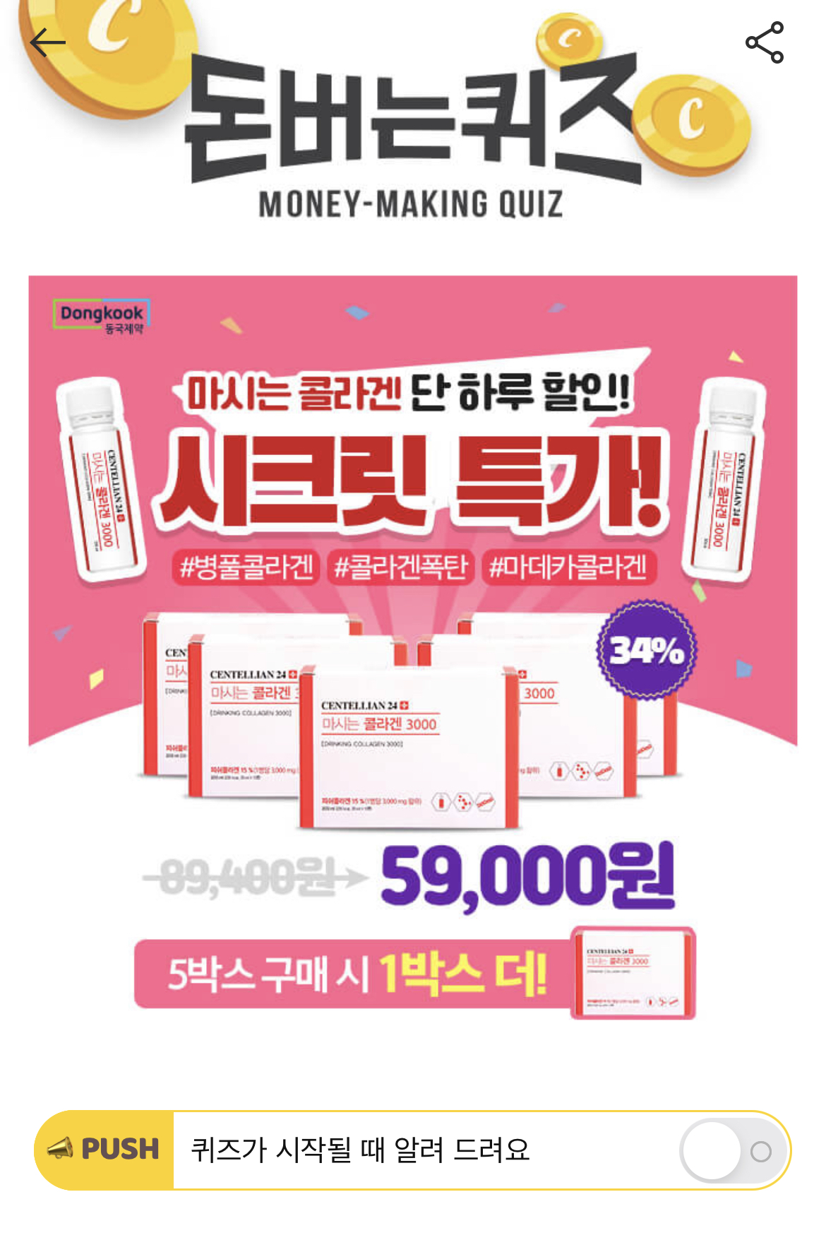 캐시워크 돈버는 퀴즈 정답 동국제약 마시는 콜라겐 3000