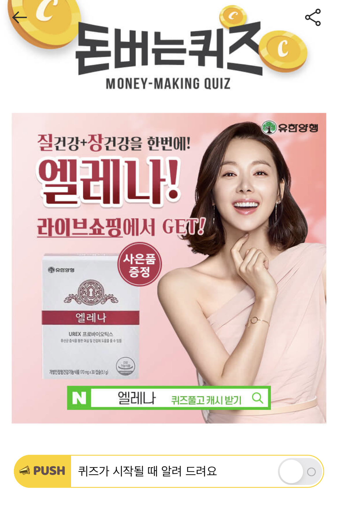 캐시워크 돈버는 퀴즈 정답 유한양행 엘레나 ㅈㄱㄱㅋㅇ