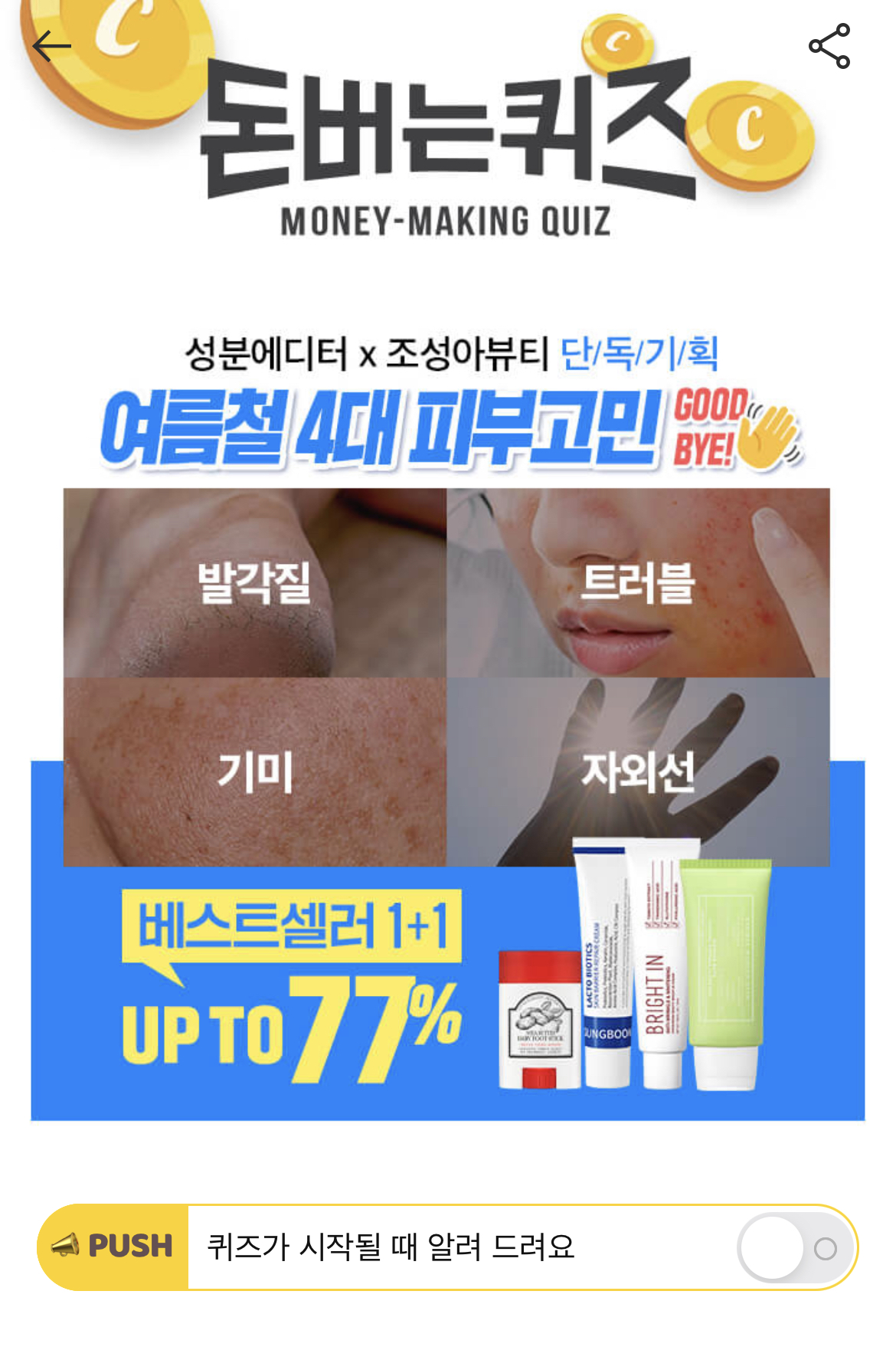 캐시워크 돈버는퀴즈 정답 성분에디터 시어버터 아기발 스틱