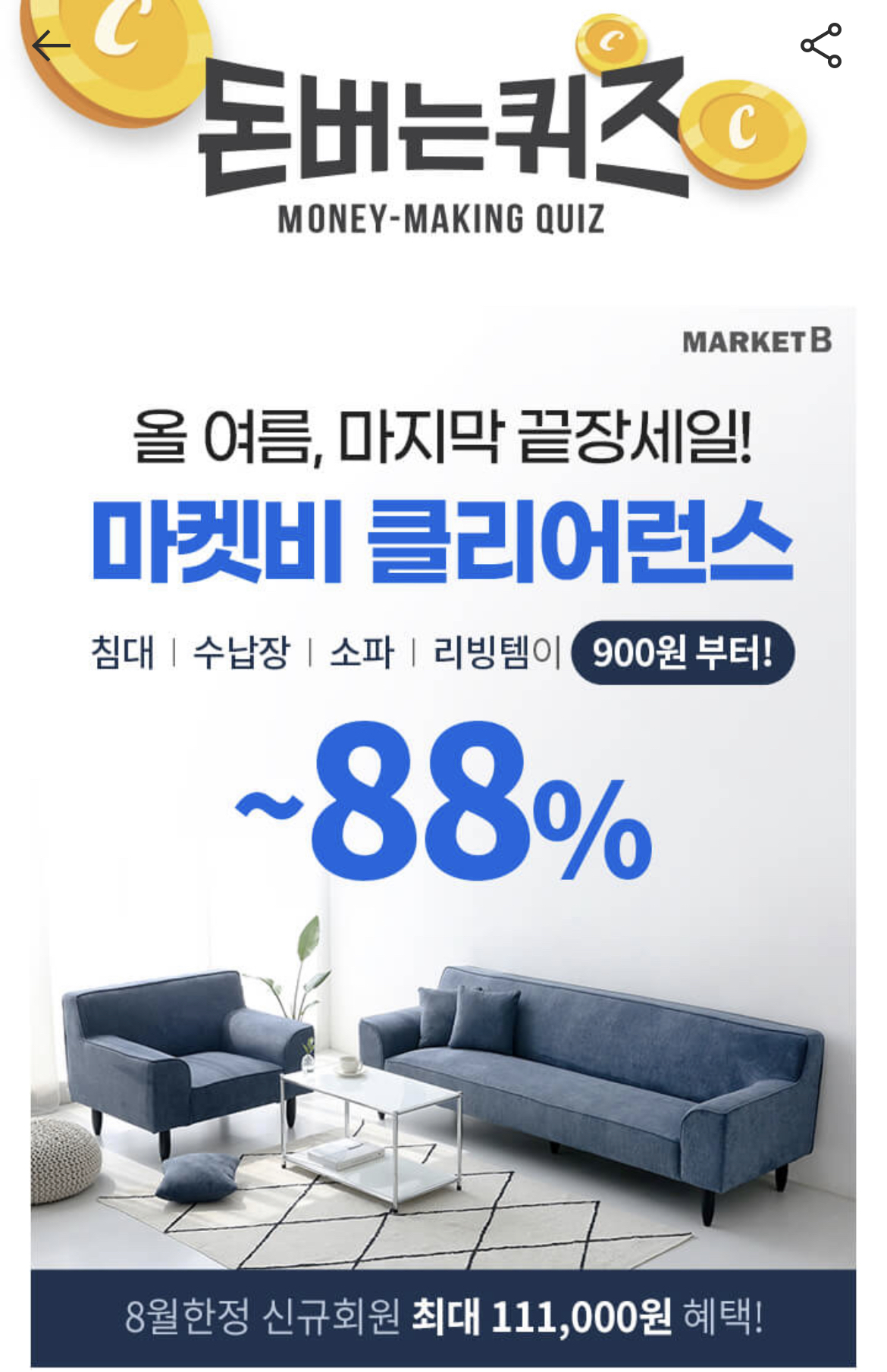 캐시워크 돈버는 퀴즈 정답 마켓비 클리어런스 ㅎㅇㅈ