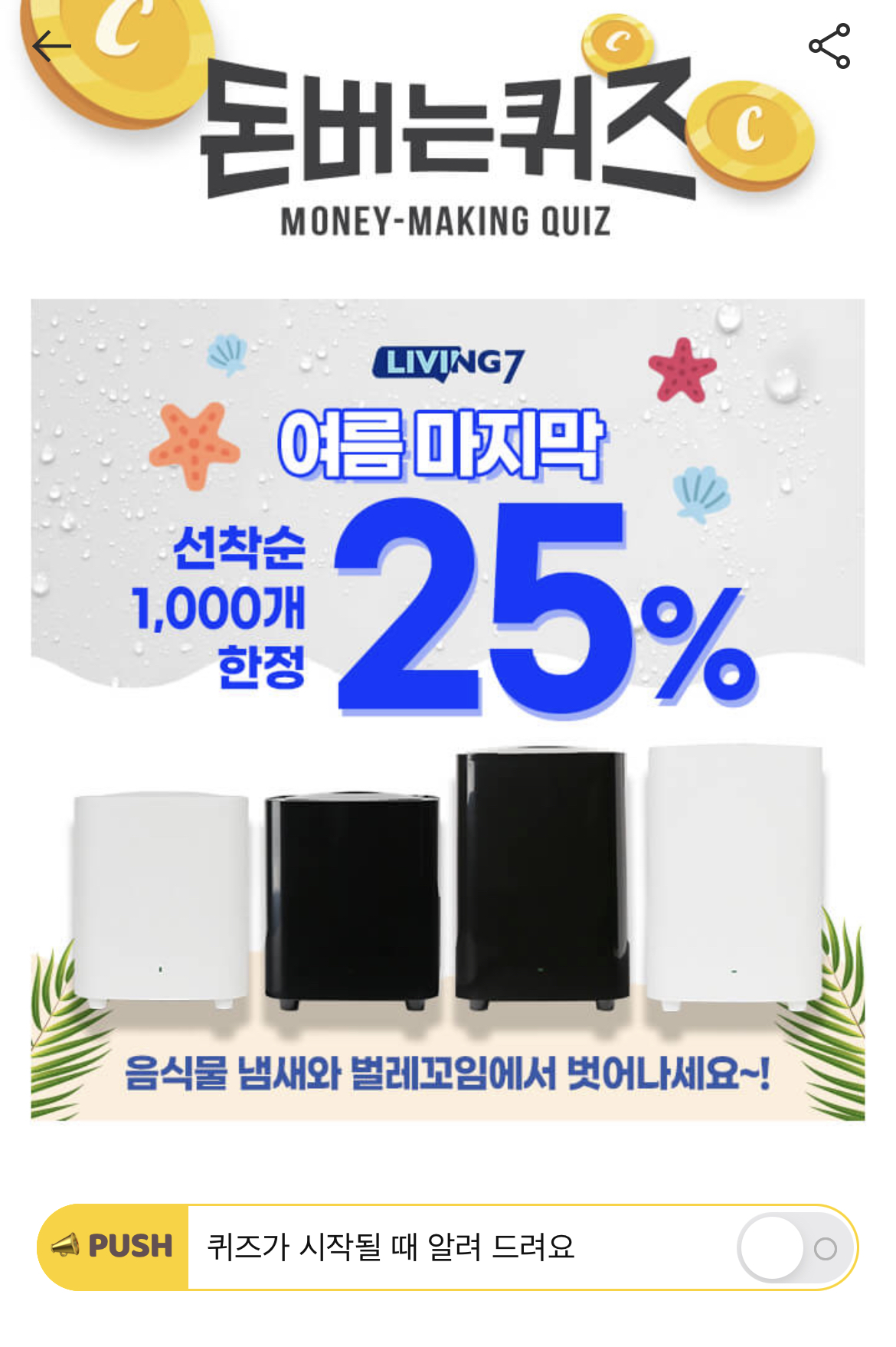 캐시워크 돈버는퀴즈 정답 리빙7 음쓰쿨장고 0원
