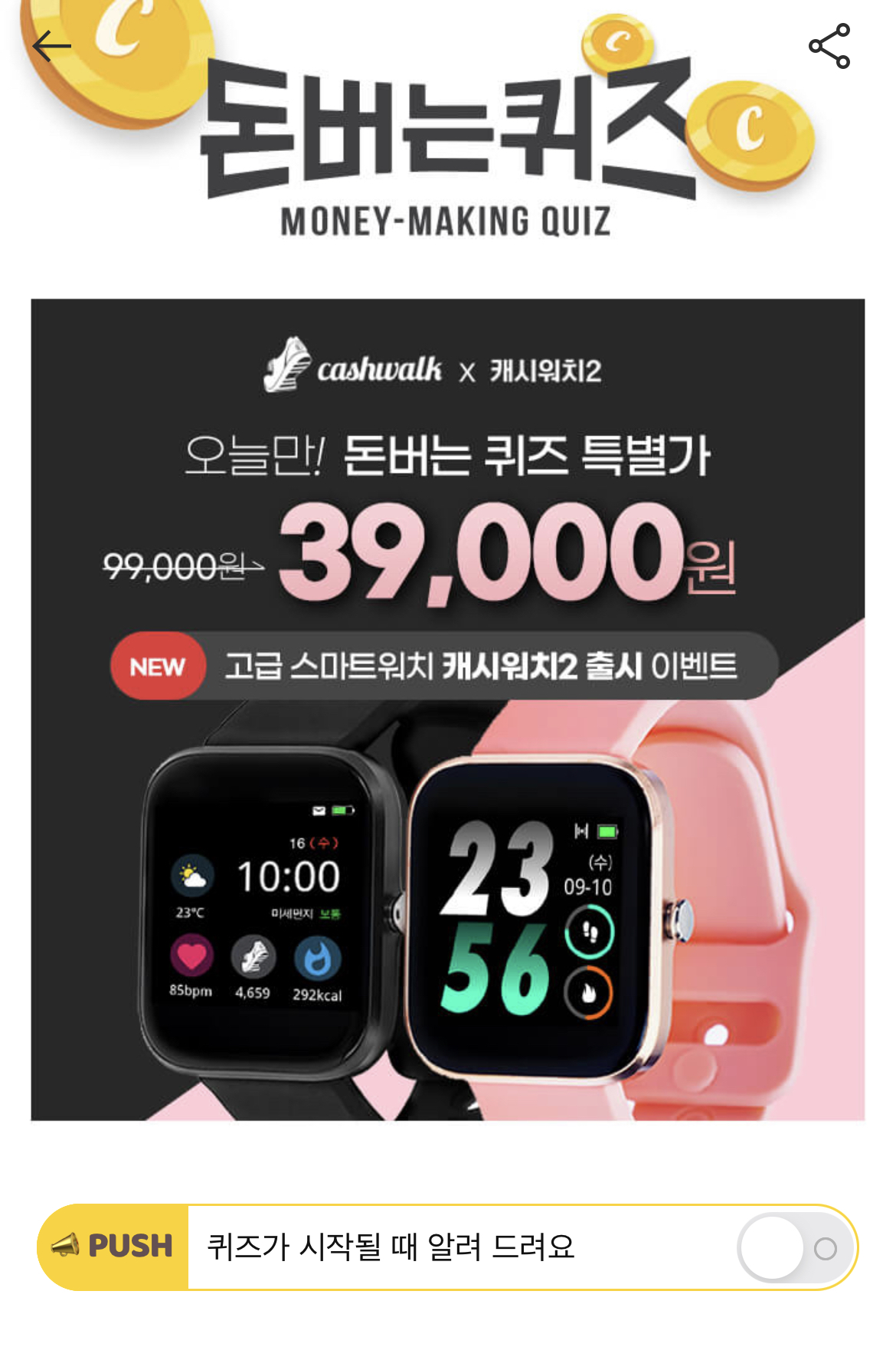 캐시워크 돈버는 퀴즈 정답 캐시워치2