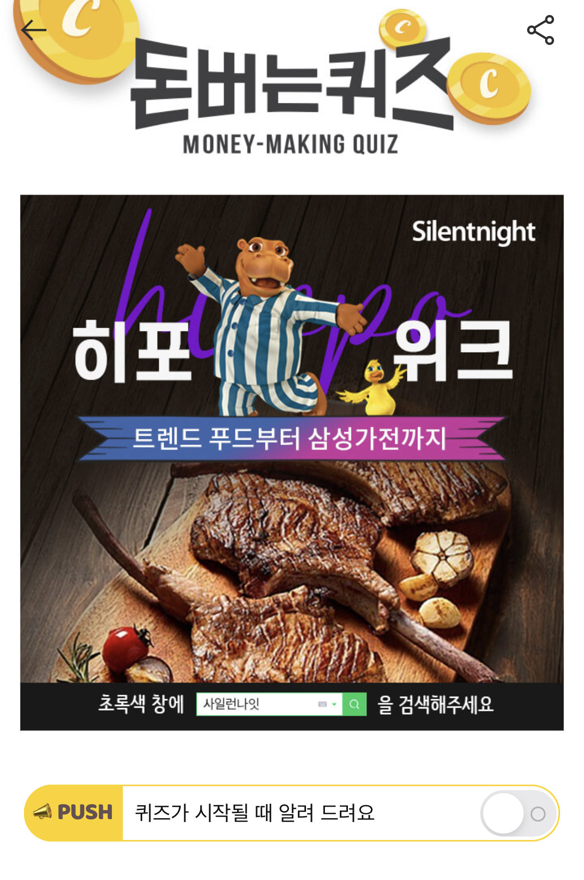 캐시워크 돈버는 퀴즈 정답 사일런나잇 히포위크 ㄱㅇㅅㄹ