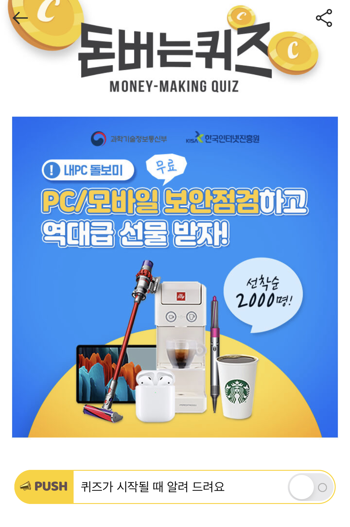 캐시워크 돈버는 퀴즈 정답 내PC 돌보미 ㅁㅂㅇ