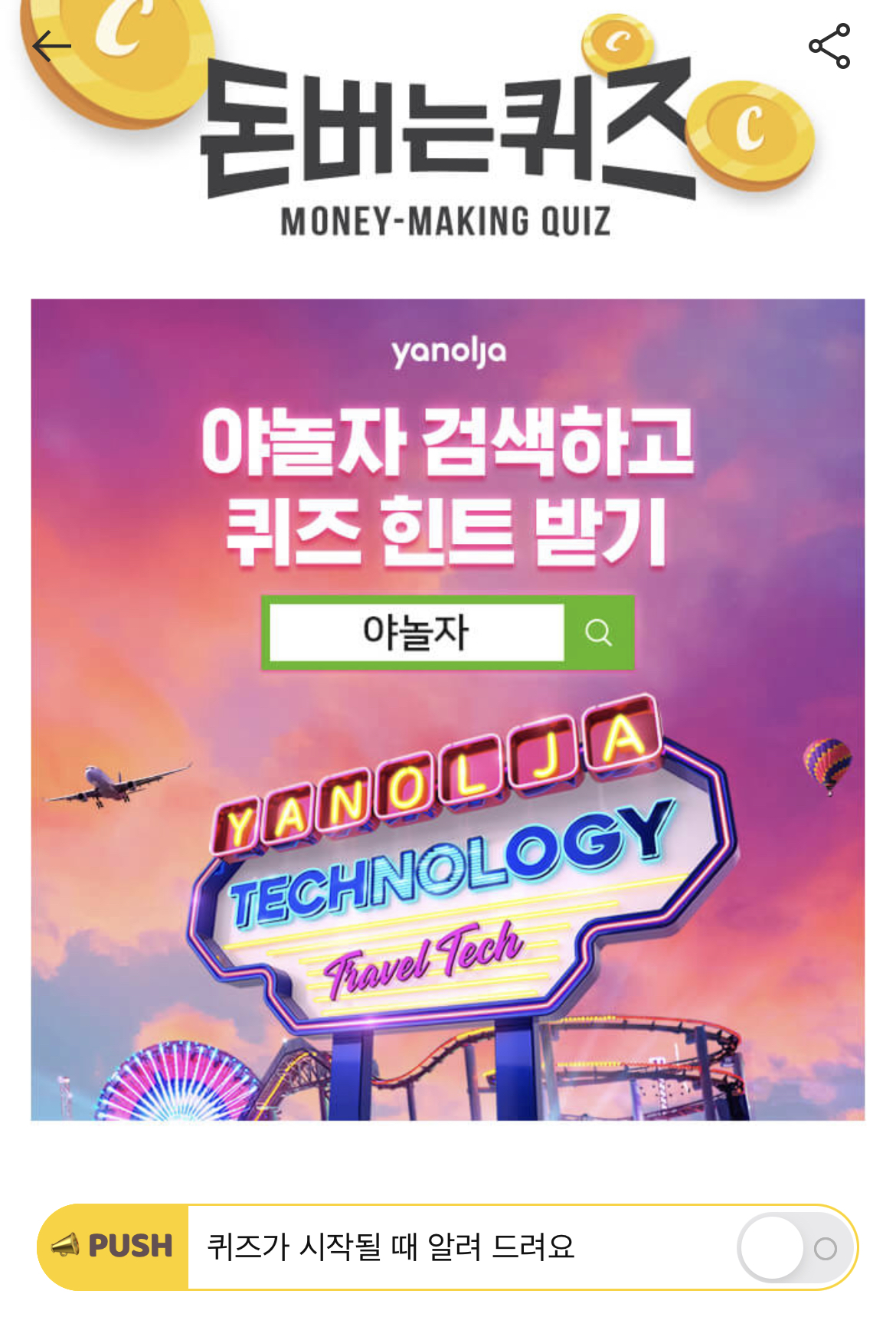 캐시워크 돈버는 퀴즈 정답 야놀자 ㄱㅌ
