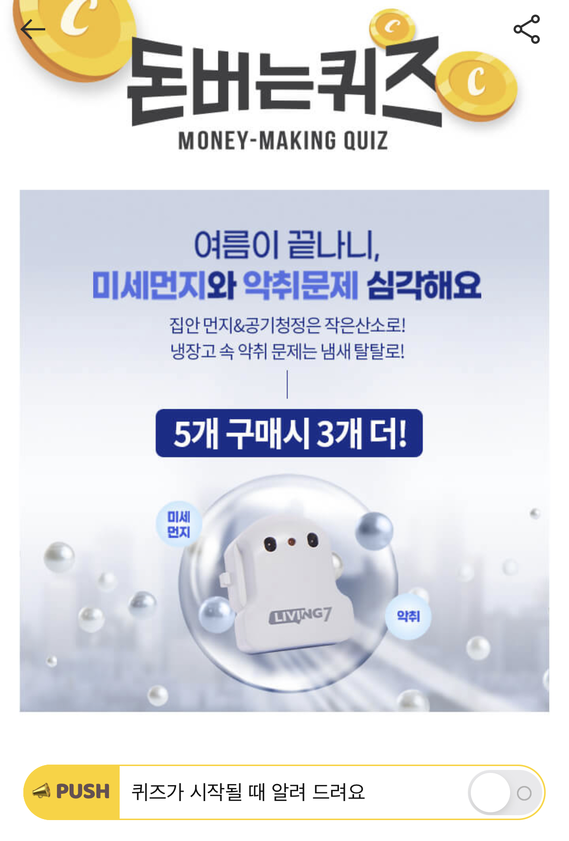 캐시워크 돈버는 퀴즈 정답 리빙7 작은산소 ㅁㅇㄱㄱ