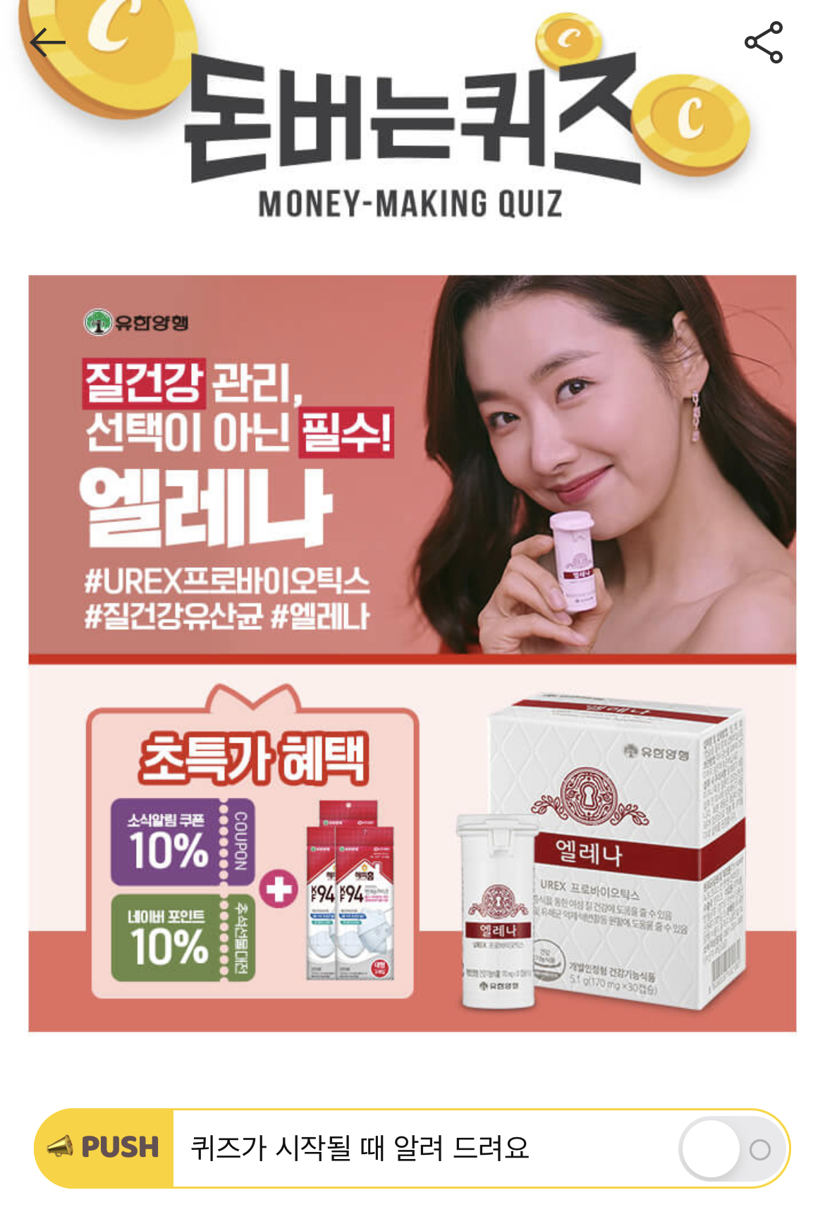 캐시워크 돈버는 퀴즈 정답 유한양행 엘레나