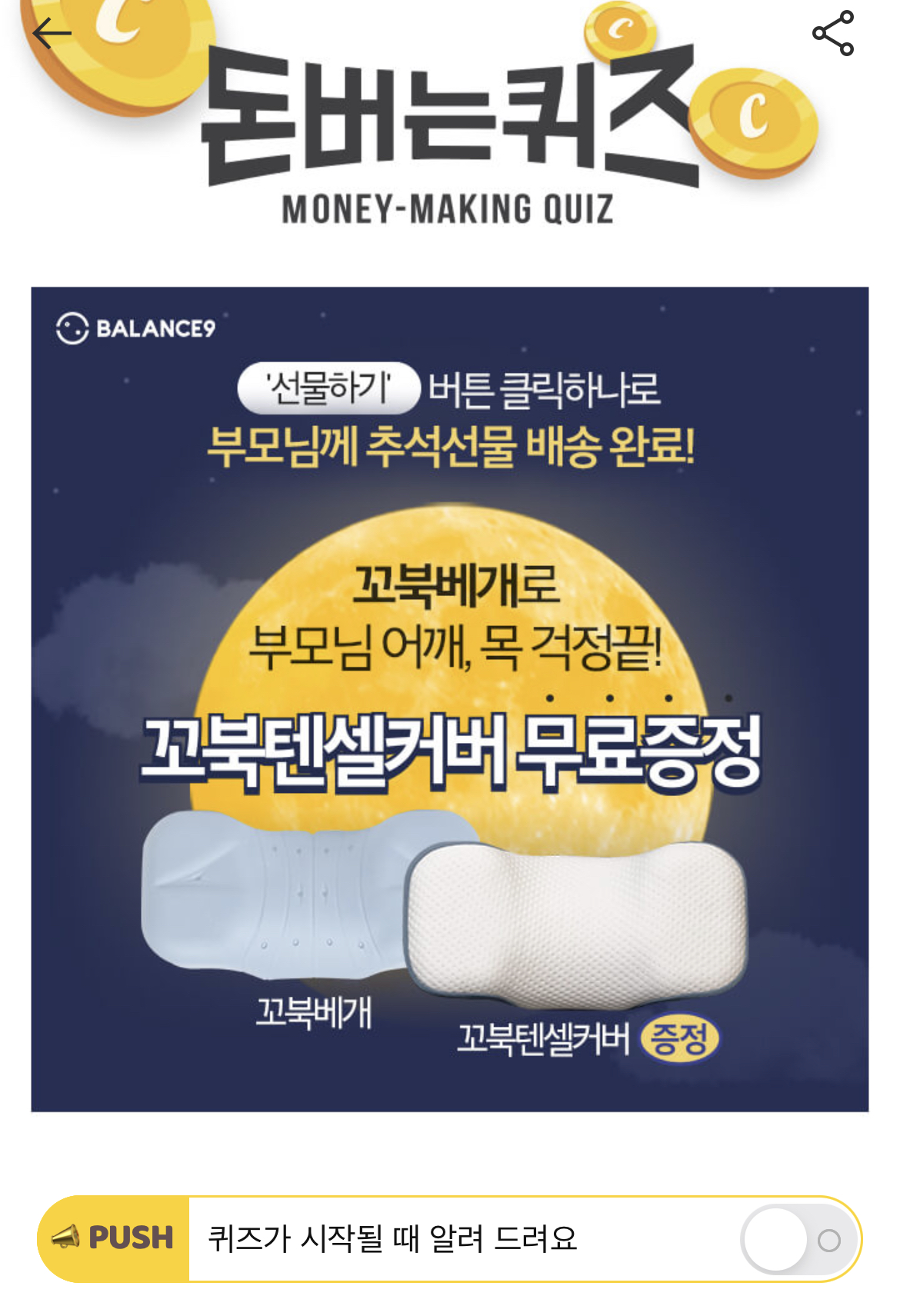 캐시워크 돈버는 퀴즈 정답 꼬북베개 ㄷㅊㅇ