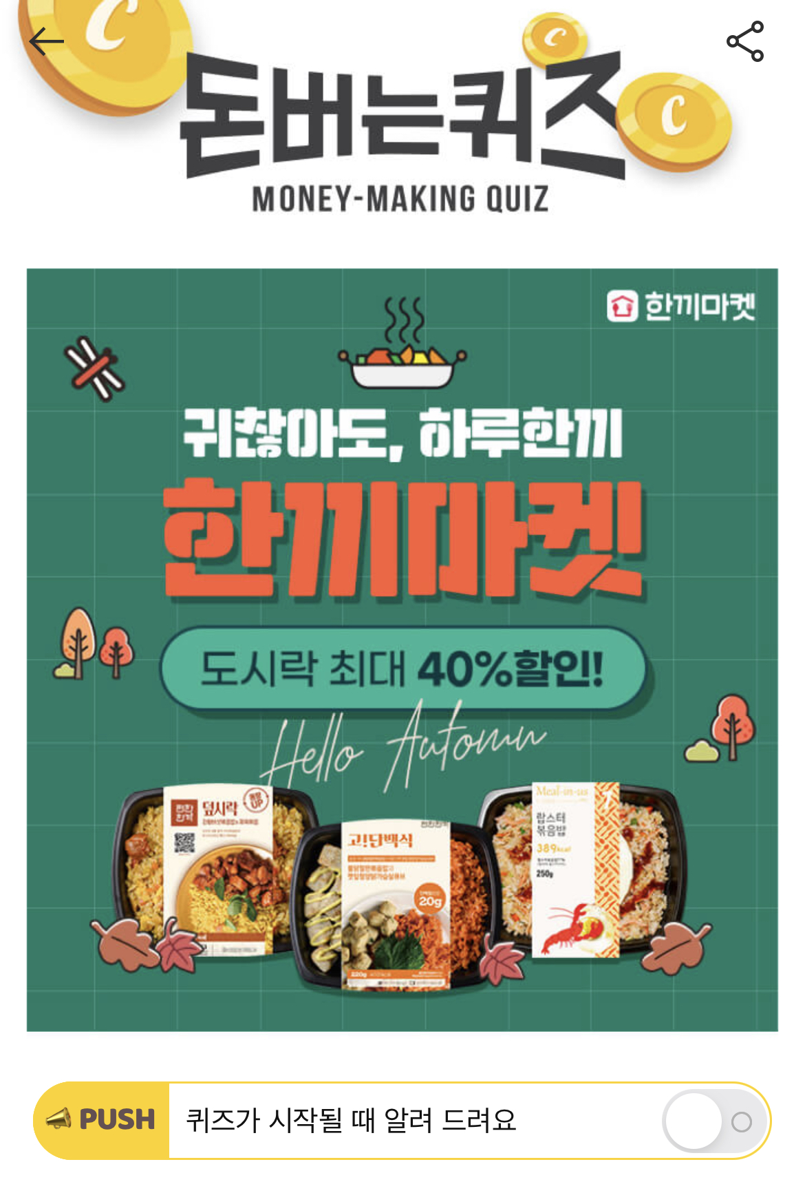 캐시워크 돈버는 퀴즈 정답 한끼마켓 할인쿠폰