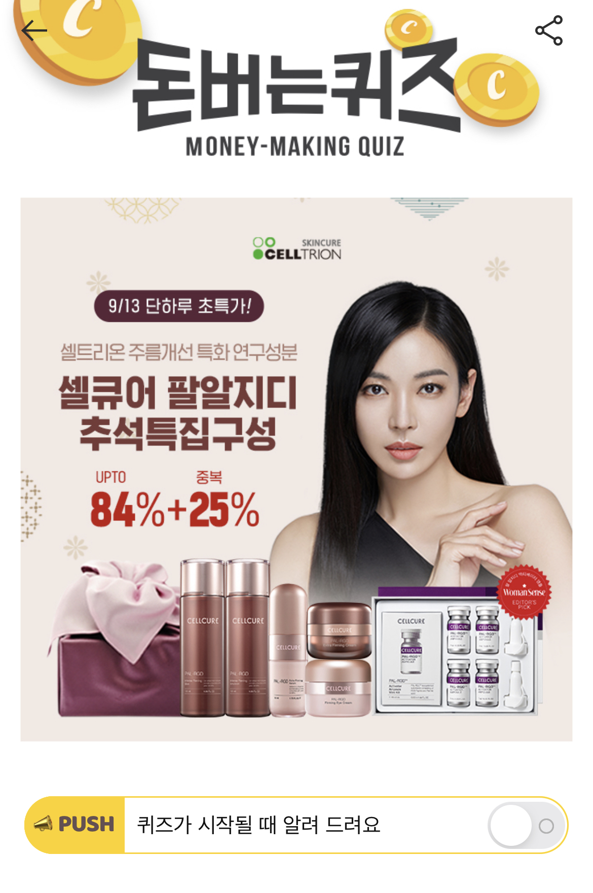 캐시워크 돈버는퀴즈 정답 셀큐어 팔알지디 액티베이터 앰플 ㅂㄷㅅ