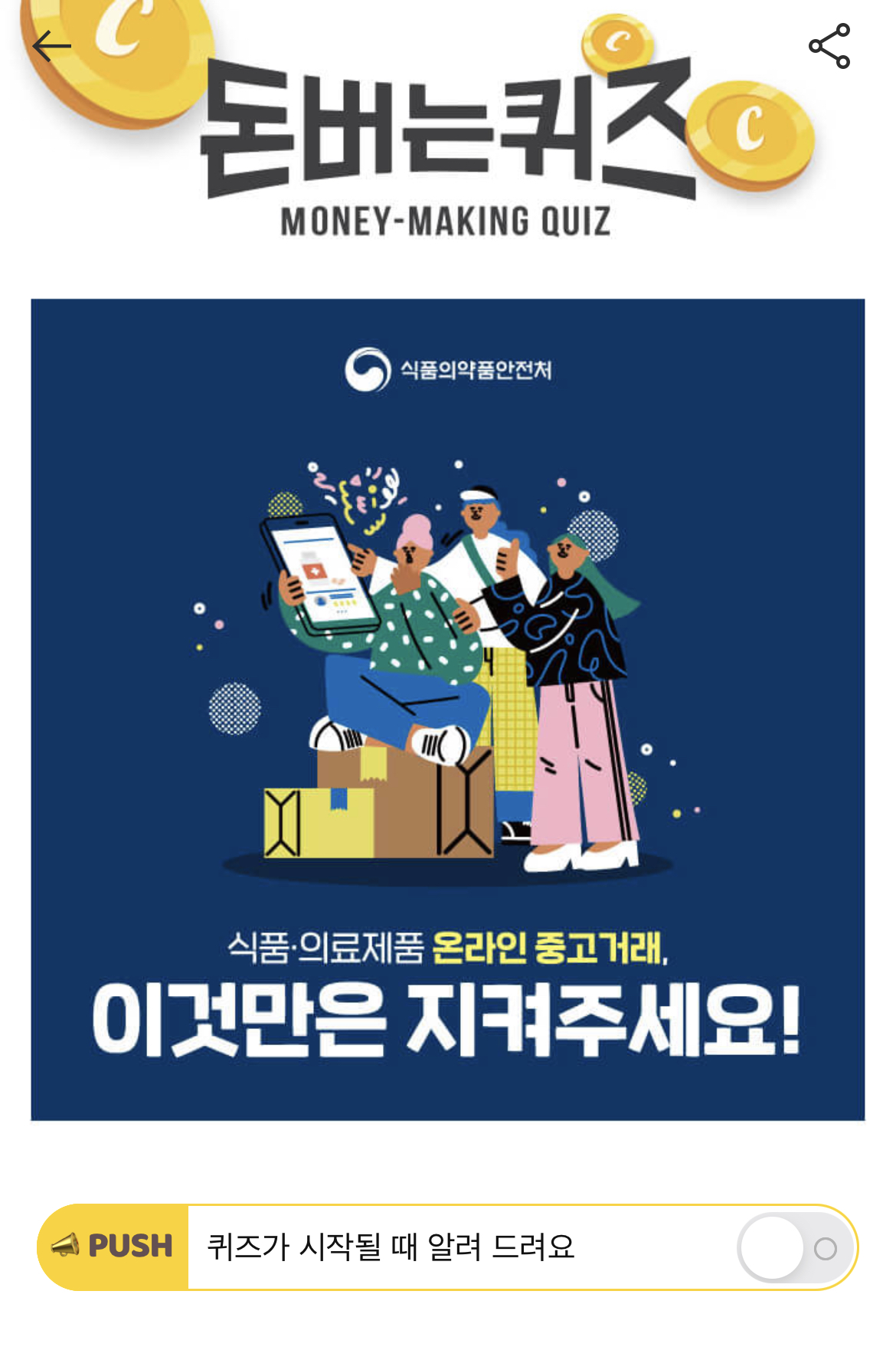 캐시워크 돈버는 퀴즈 정답 식품의약품안전처 중고마켓 판매