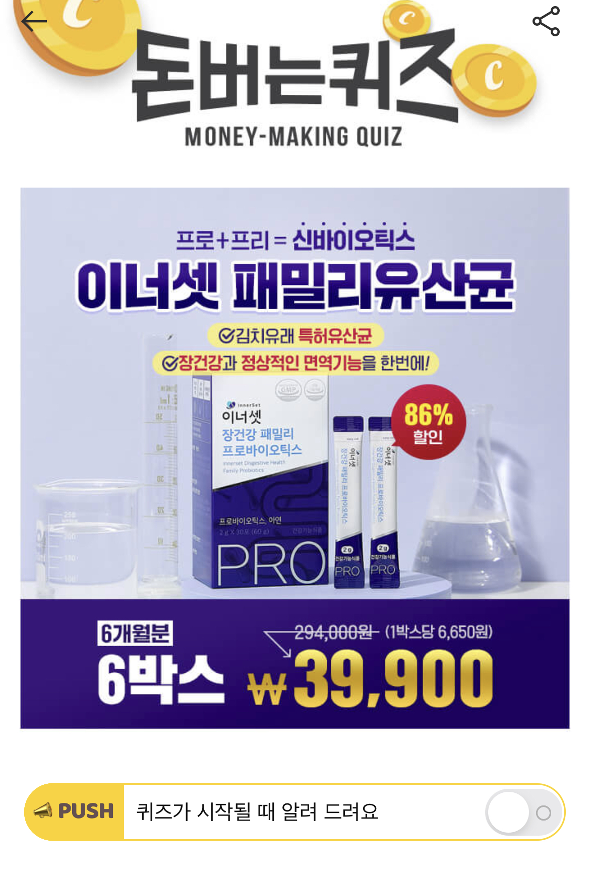 캐시워크 돈버는 퀴즈 정답 이너셋 패밀리유산균 ㅍㄹㅌㄹ