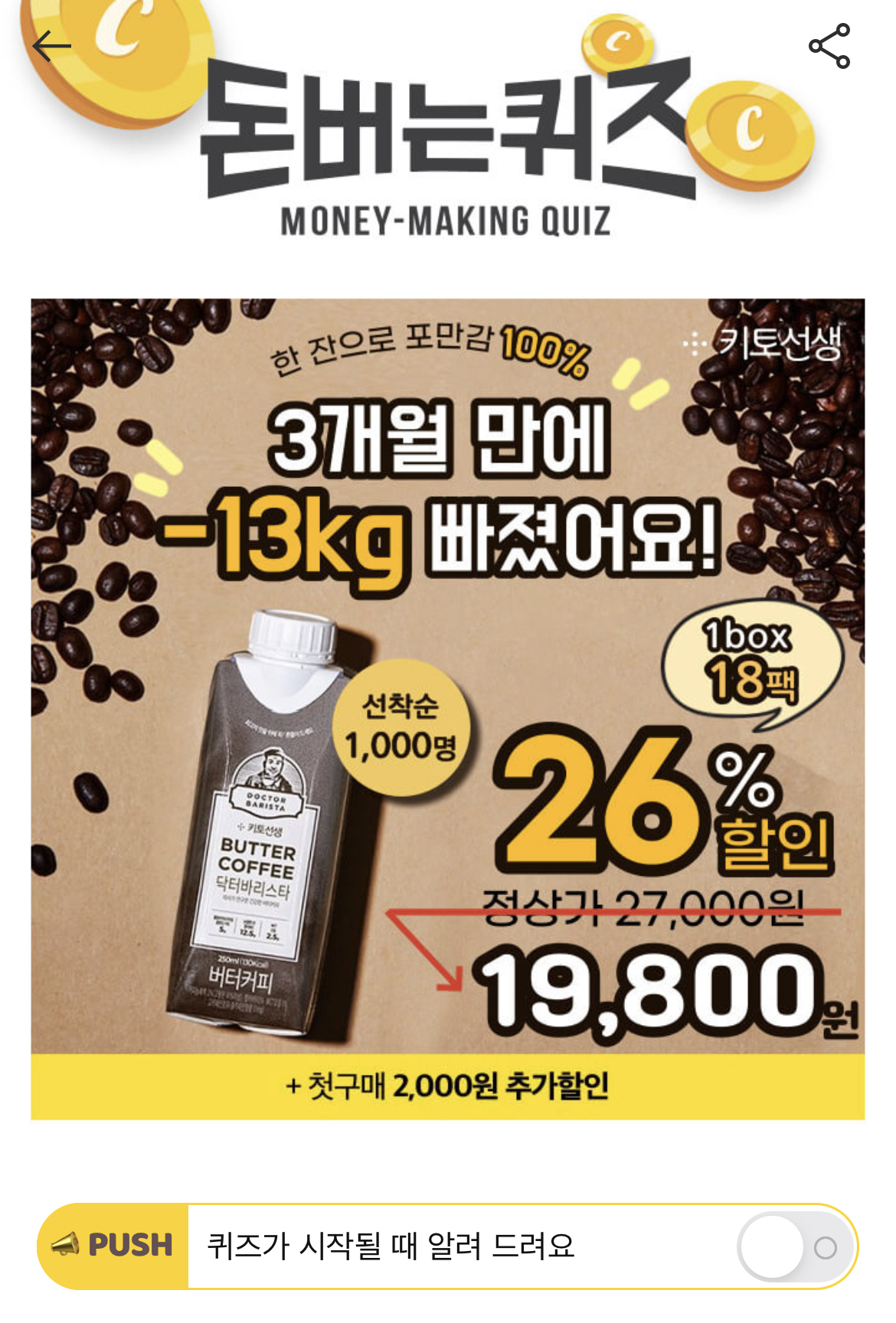 캐시워크 돈버는 퀴즈 정답 키토선생 닥터바리스타 O번째 구매