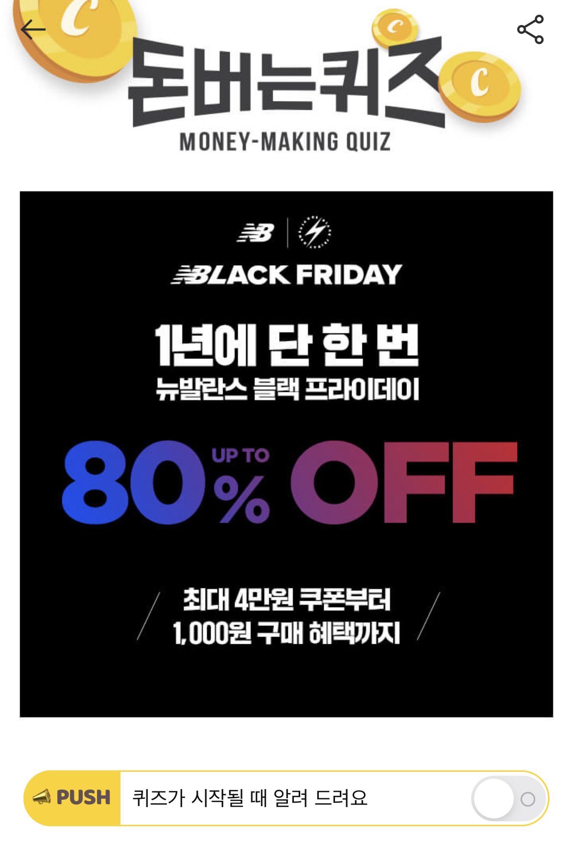 캐시워크 돈버는 퀴즈 정답 뉴발란스 블랙프라이데이 최대 할인율 OO%