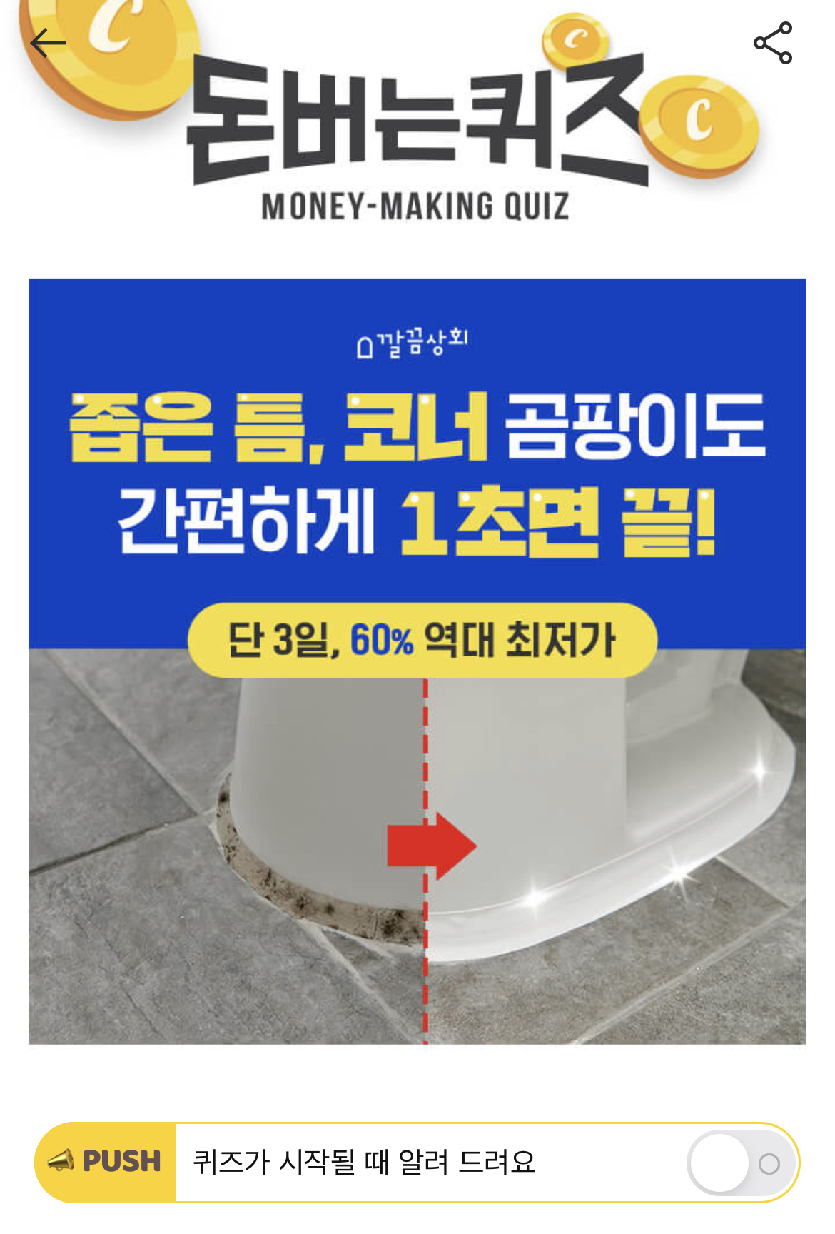 캐시워크 돈버는 퀴즈 정답 깔끔상회 멀티 방수테이프 ㄱㅇㄷㄹㅇ