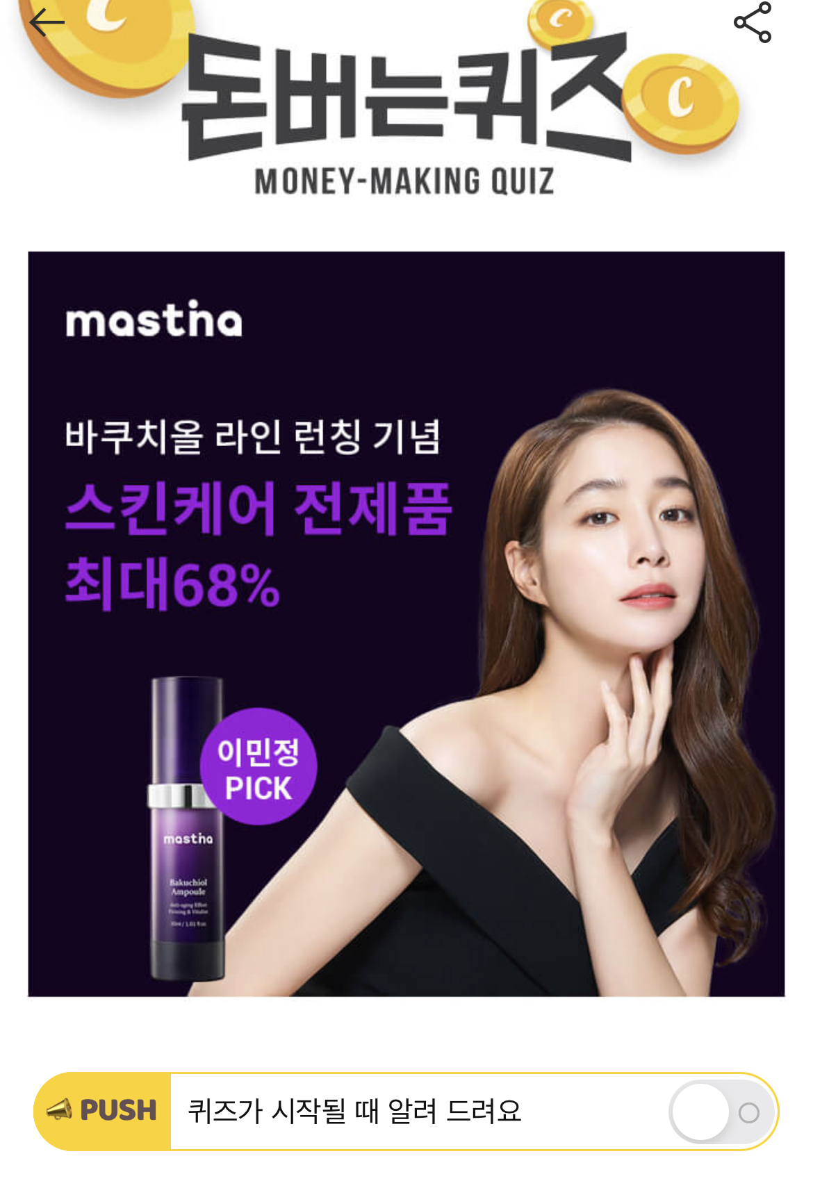 캐시워크 돈버는 퀴즈 정답 매스티나 바쿠치올 앰플 최대 OO% 할인