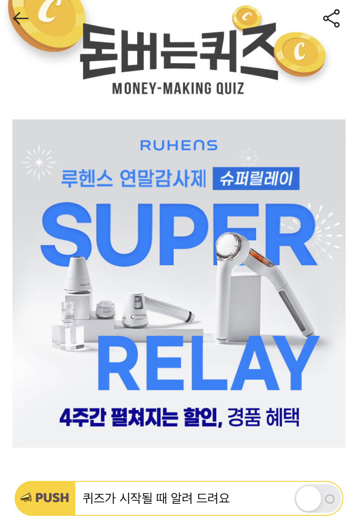 캐시워크 돈버는 퀴즈 정답 루헨스 연말감사제 슈퍼릴레이