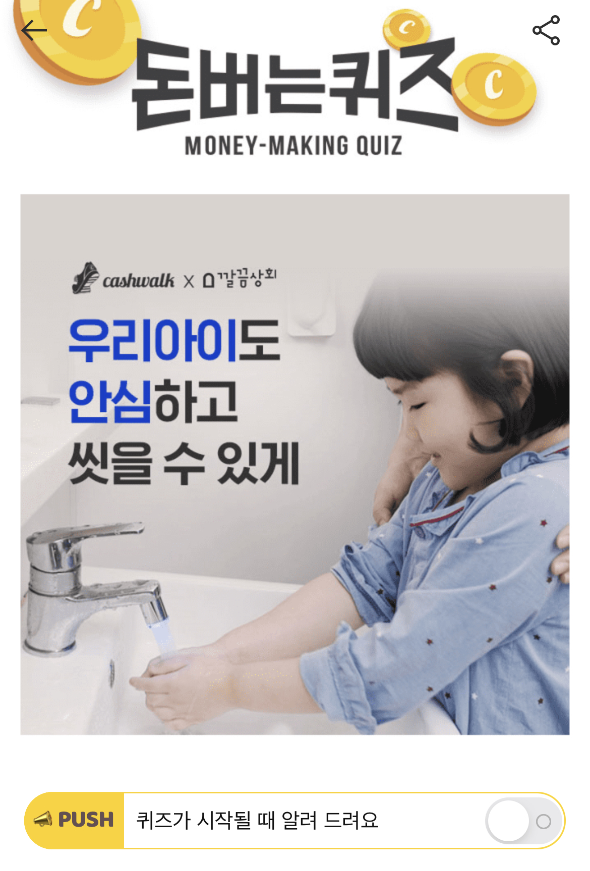 캐시워크 돈버는 퀴즈 정답 깔끔상회 스마트 워터탭 ㅇㅈㅈㅊ