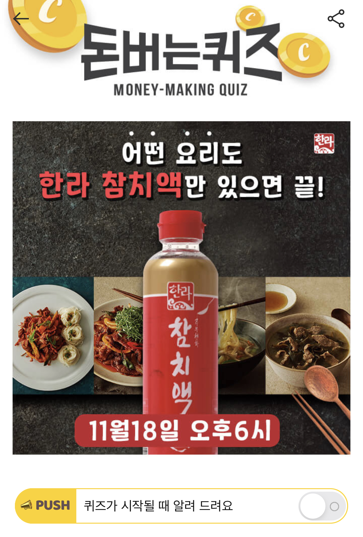 캐시워크 돈버는 퀴즈 정답 한라식품 ㅇㅈㄹㅅㅍ