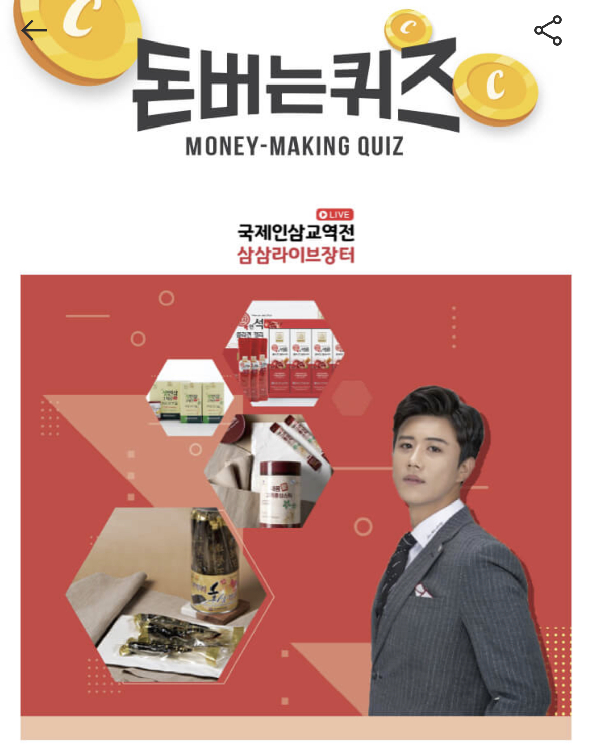 캐시워크 돈버는 퀴즈 정답 2021 국제인삼교역전 라이브커머스 ㅅㅅㄹㅇㅂㅈㅌ