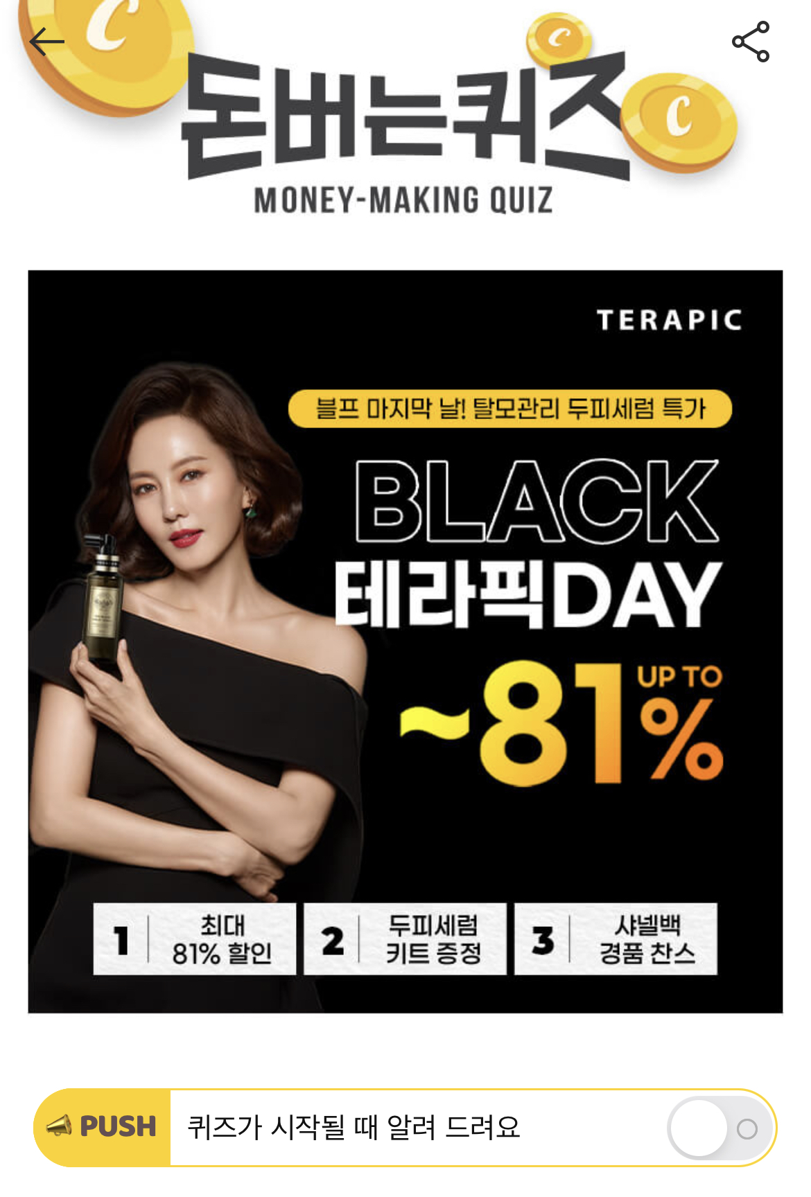 캐시워크 돈버는 퀴즈 정답 테라픽 BLACK 테라픽 DAY ㅎㅇㅌㄴ