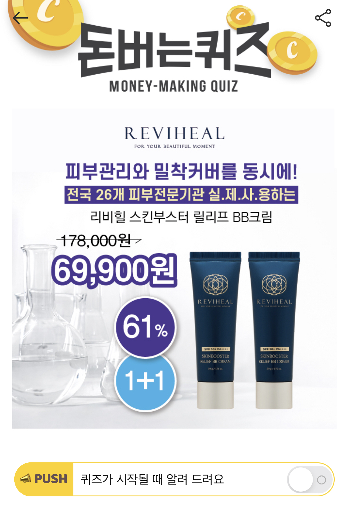 캐시워크 돈버는 퀴즈 정답 리비힐 스킨부스터 BB크림 ㄹㅂㅎ