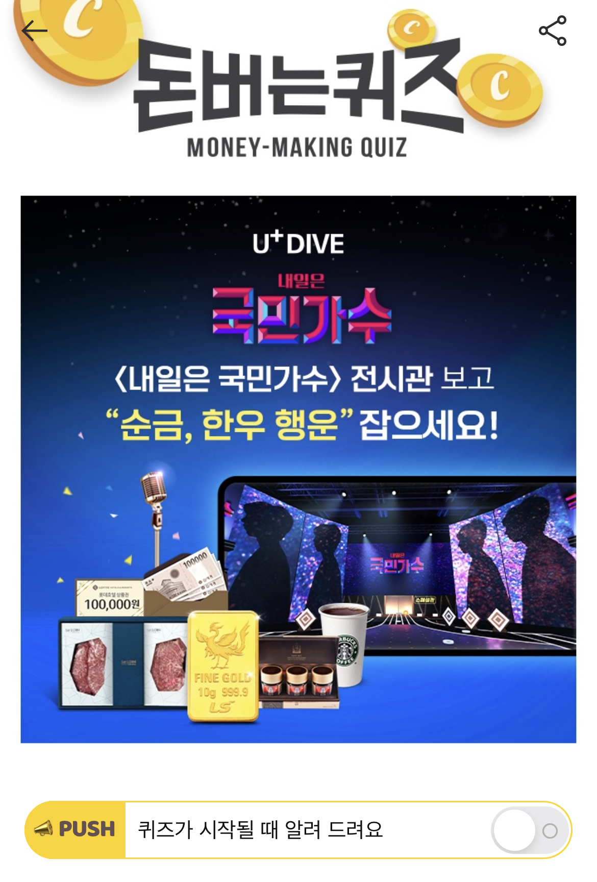 캐시워크 돈버는 퀴즈 정답 U+DIVE 내일은 국민가수 숫자