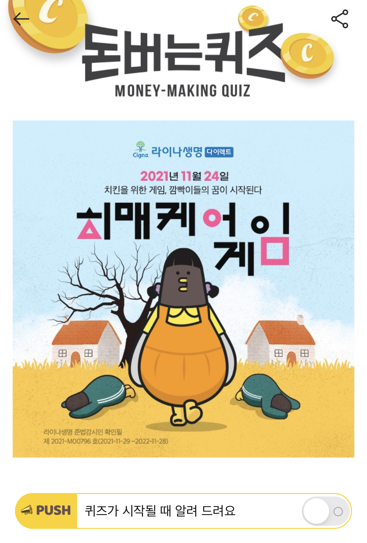 캐시워크 돈버는 퀴즈 정답 라이나생명 다이렉트 ㅊㅁㅋㅇ