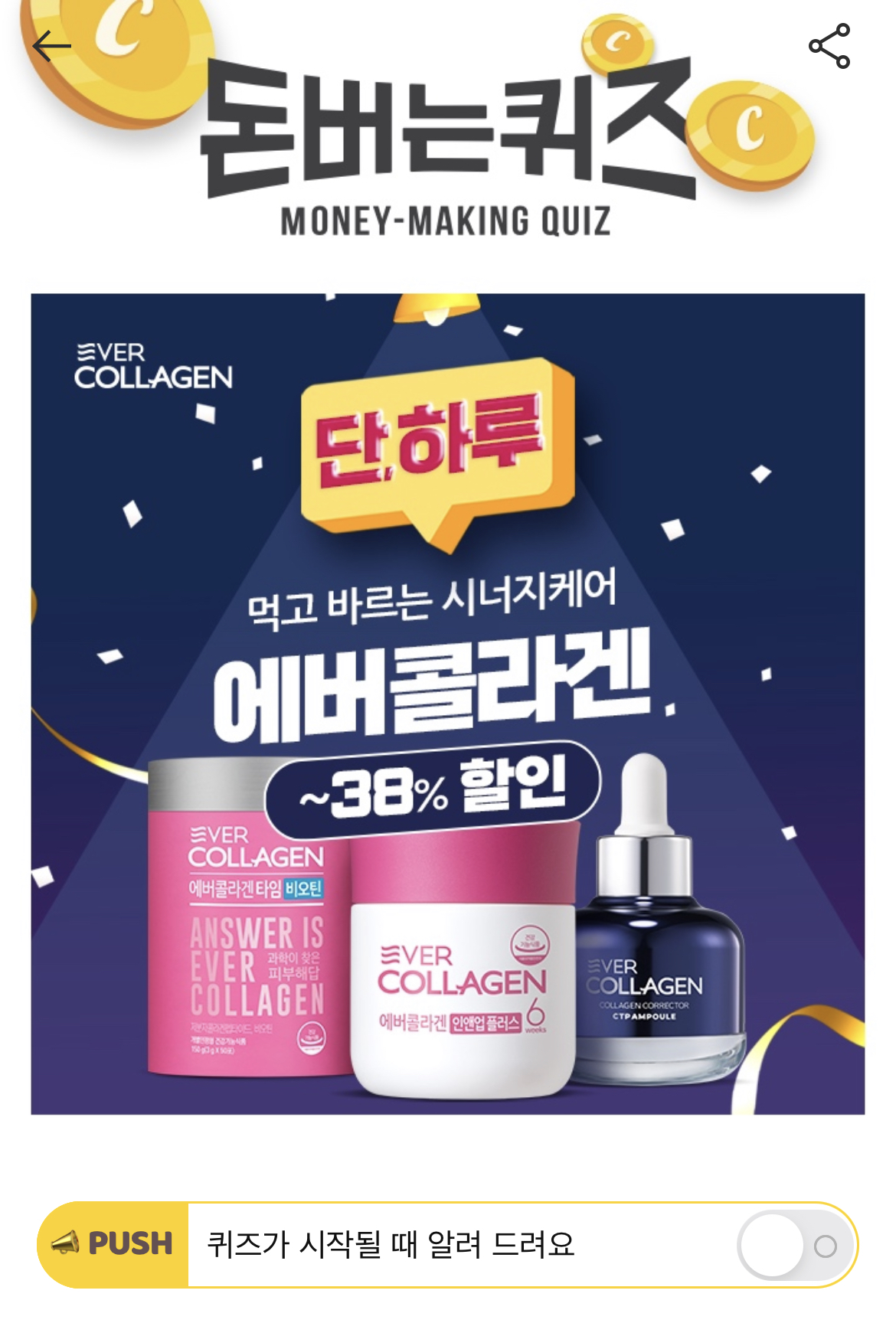 캐시워크 돈버는 퀴즈 정답 에버콜라겐 ㅅㄴㅈ