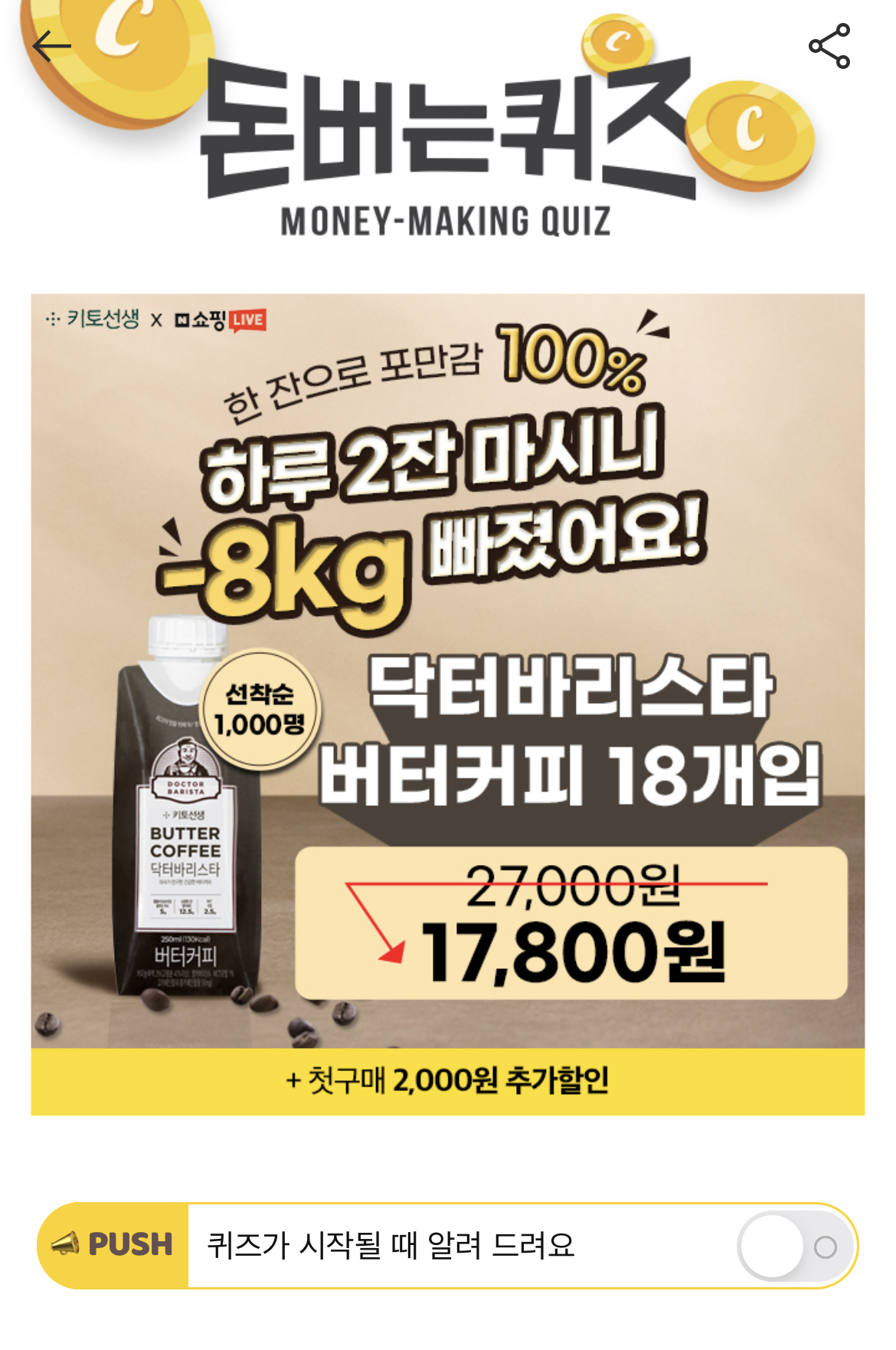 캐시워크 돈버는 퀴즈 정답 키토선생 쇼핑라이브 닥터바리스타 연속 매진