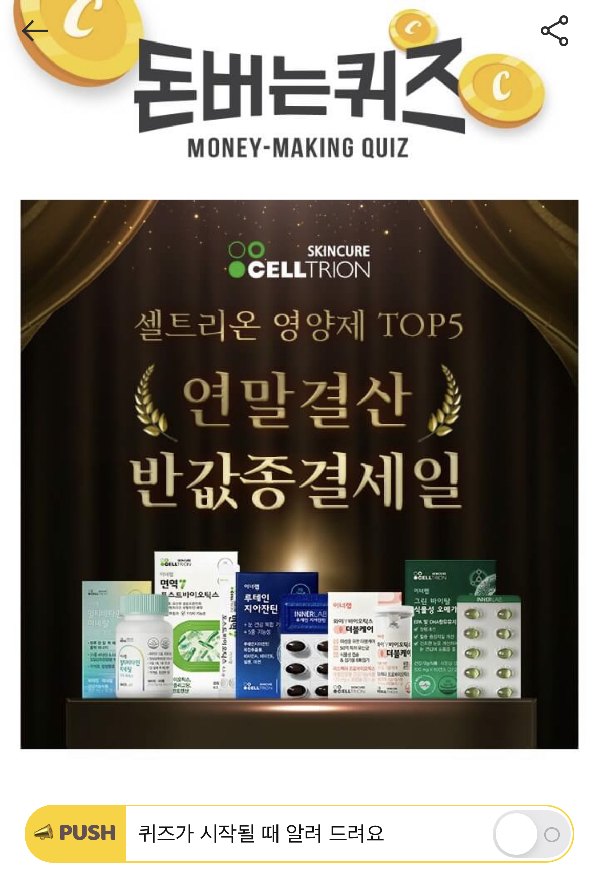 캐시워크 돈버는 퀴즈 정답 셀트리온 와이Y바이오틱스 더블케어 ㄹㅅㅍㅌ