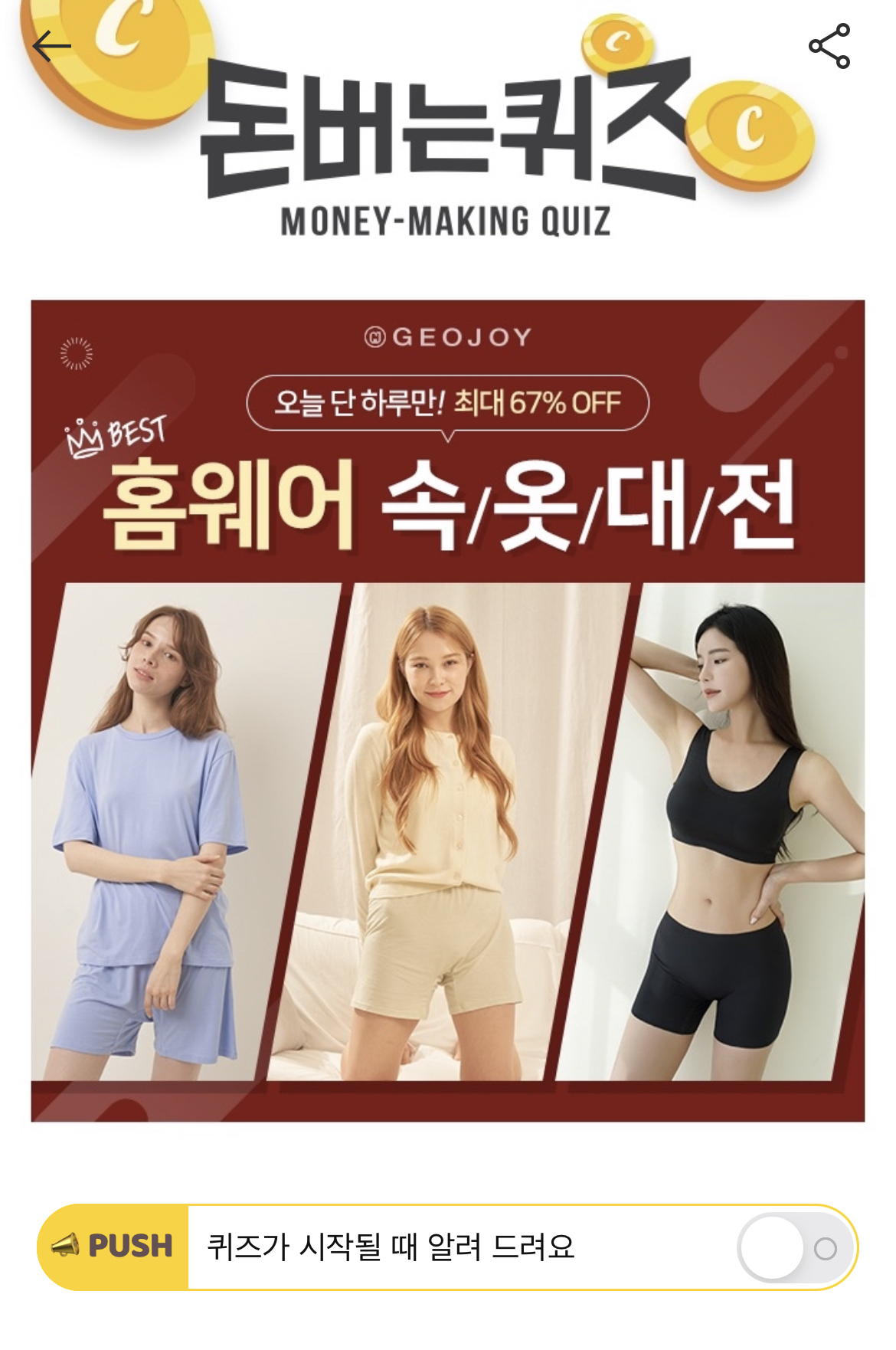 캐시워크 돈버는 퀴즈 정답 지오지아 매일매일 언더웨어 ㅋㄹㅇㄹ