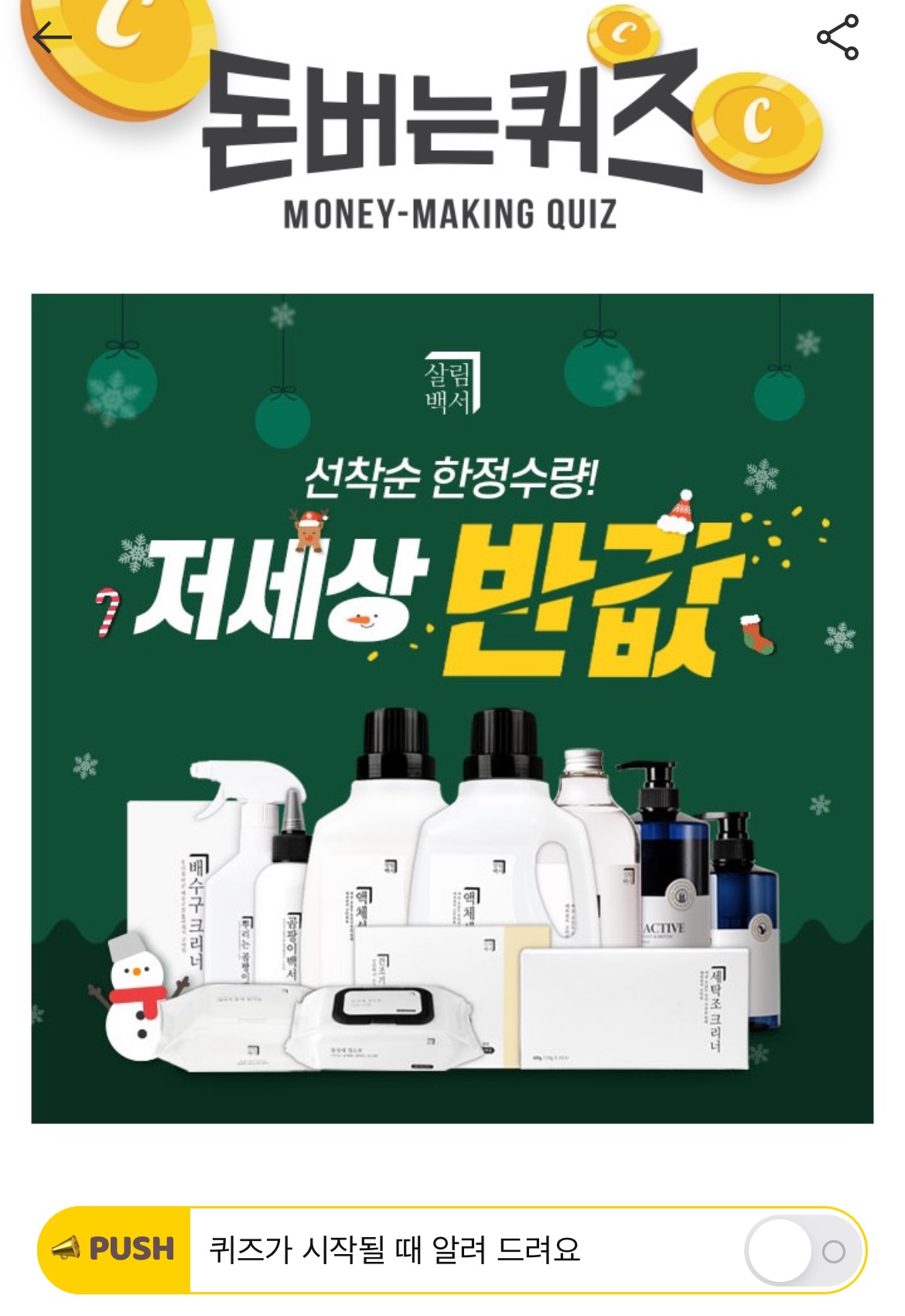 캐시워크 돈버는 퀴즈 정답 살림백서 ㅇㅊㅅㅌㅅㅈ