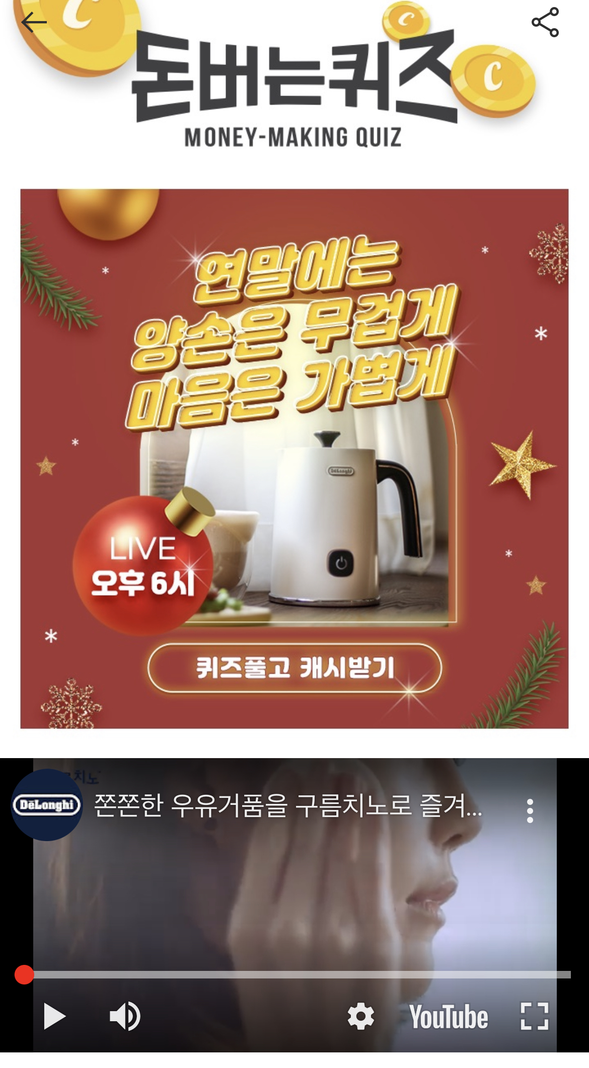 캐시워크 돈버는 퀴즈 정답 드롱기 구름치노 우유 거품기 ㅅㄱㅈ