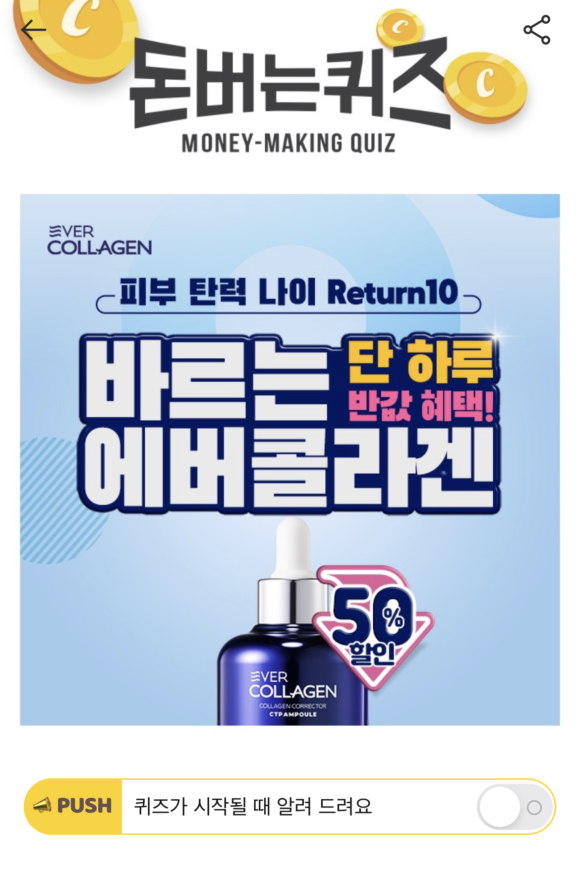 캐시워크 돈버는 퀴즈 정답 대한민국 1등 에버콜라겐 ㅁㄱㅂㄹㄴ