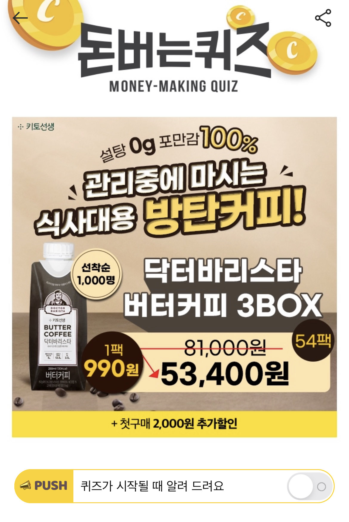 캐시워크 돈버는 퀴즈 정답 키토선생 방탄커피 닥터바리스타 후기
