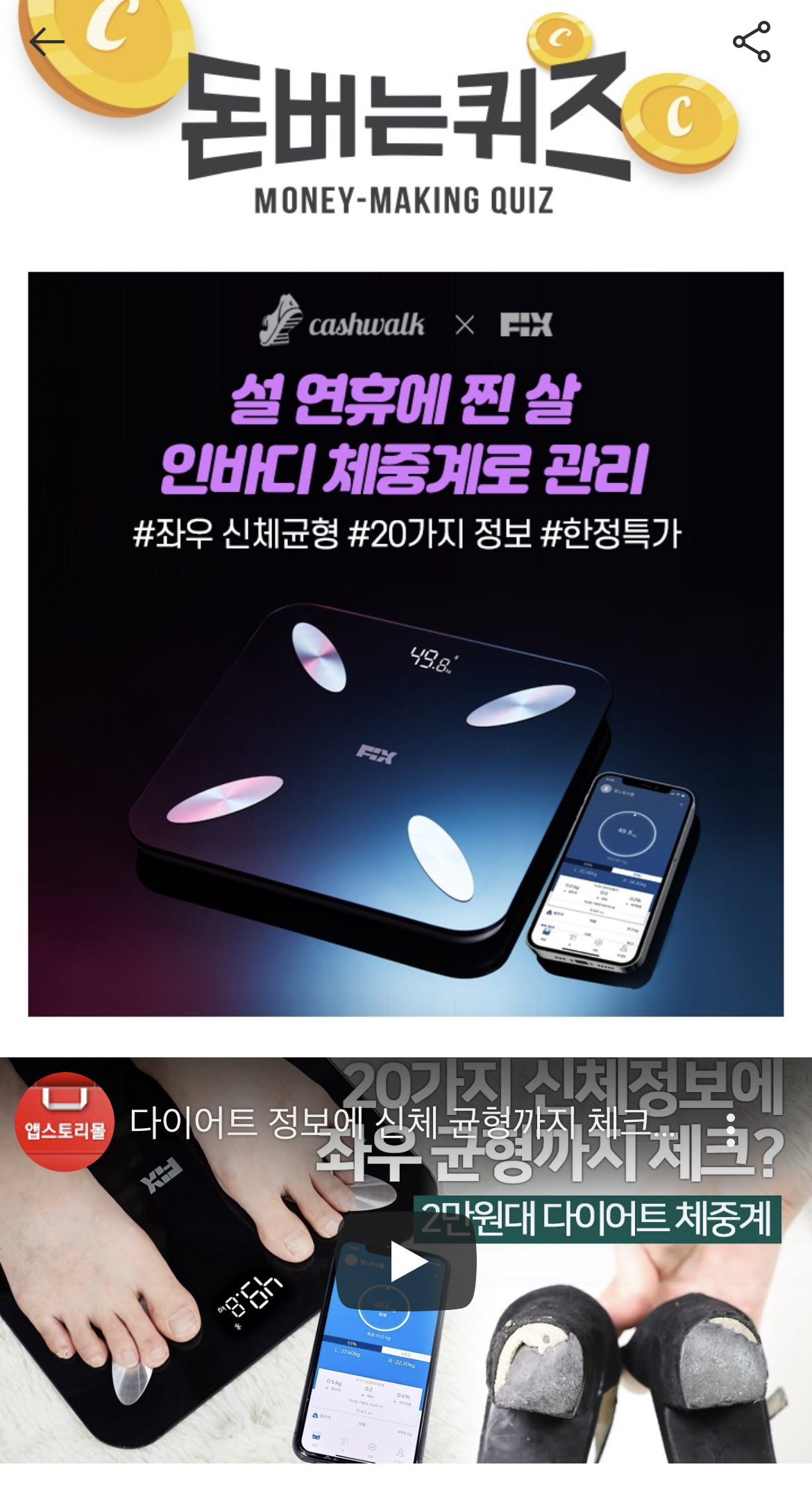 캐시워크 돈버는 퀴즈 정답 픽스 밸런스 인바디 체중계 XSC-102 ㄱㄱㄷ