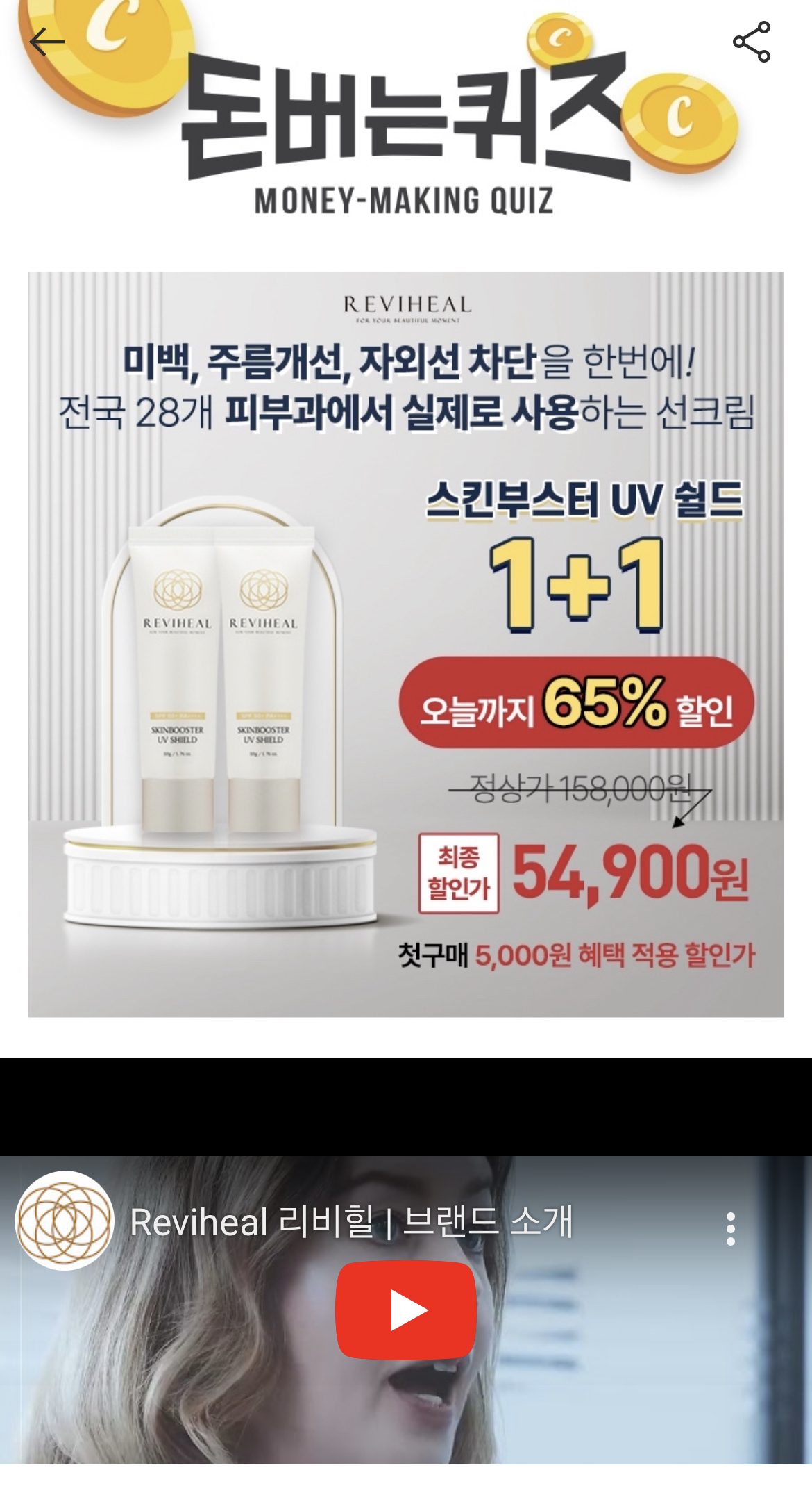 캐시워크 돈버는 퀴즈 정답 리비힐 스킨부스터 UV 쉴드 ㅂㅌ